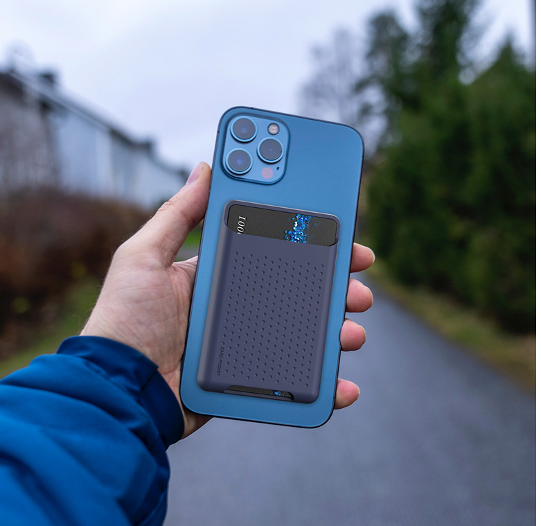 The card holder is about 7mm thick and can be easily attached to the back of the iPhone.