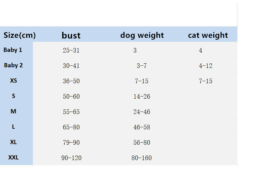 Specifications (length * width): XS (no reflective strip), S, M, L, XL, XXL