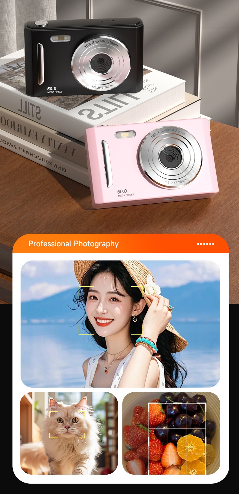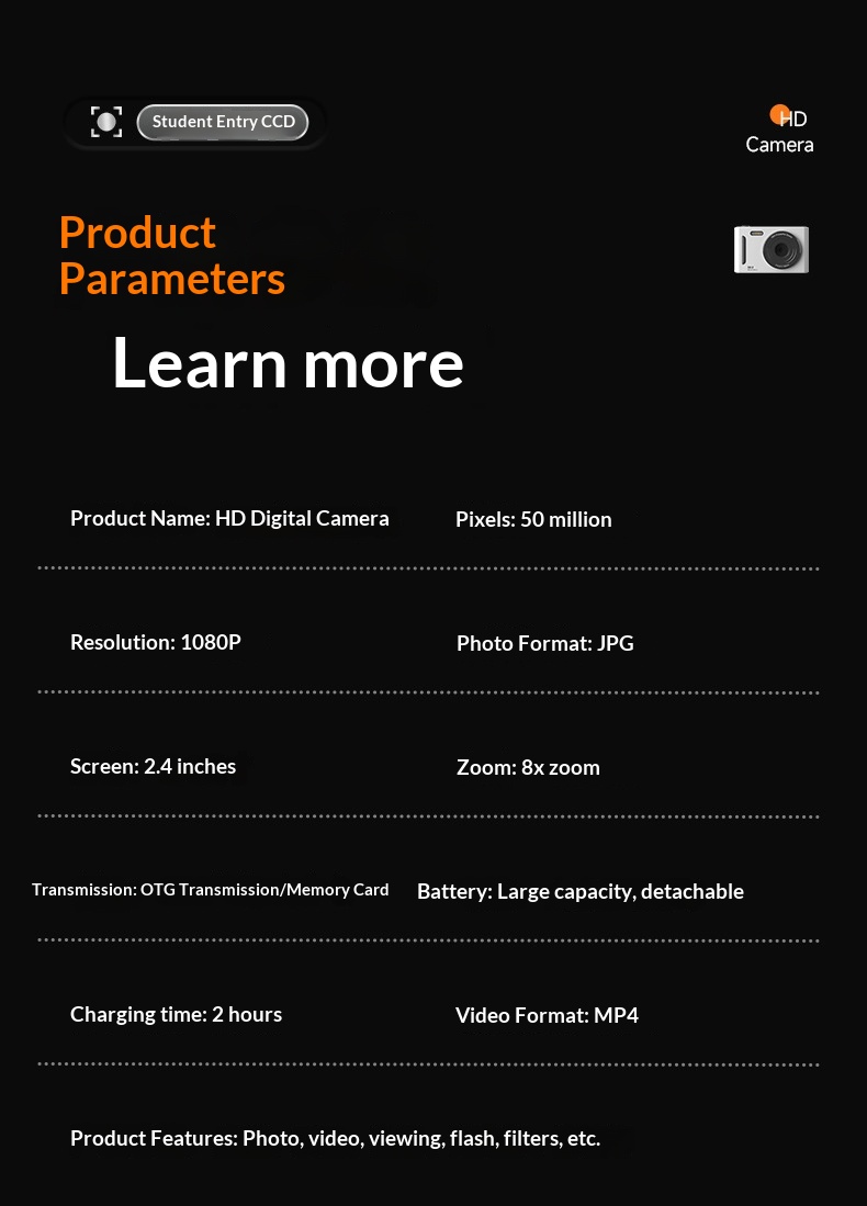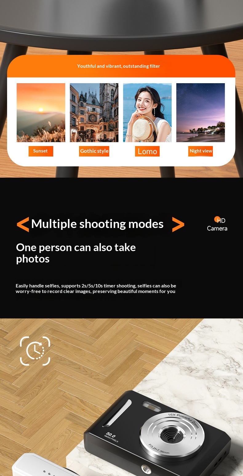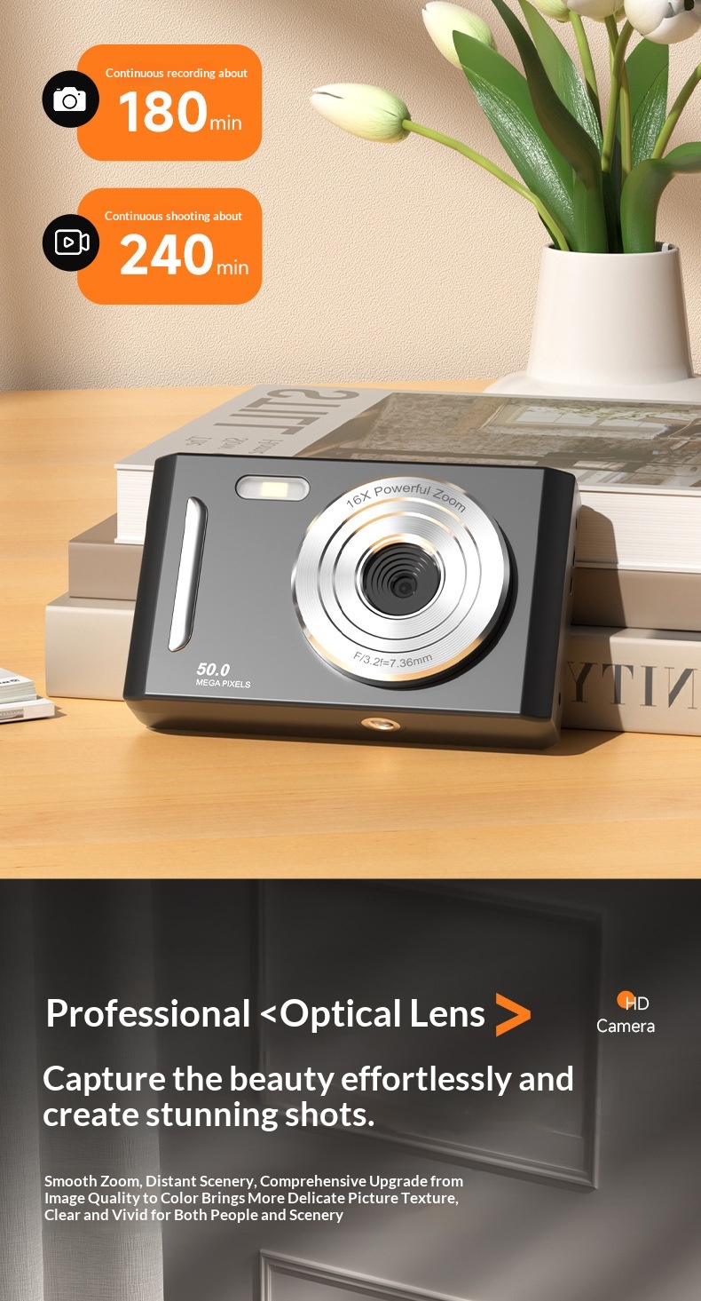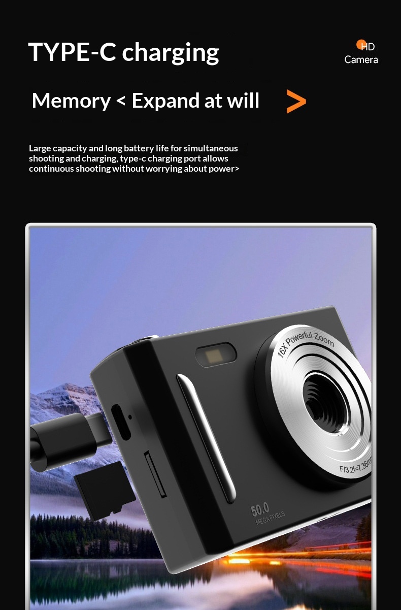 Package contents: Camera, charging cable, manual