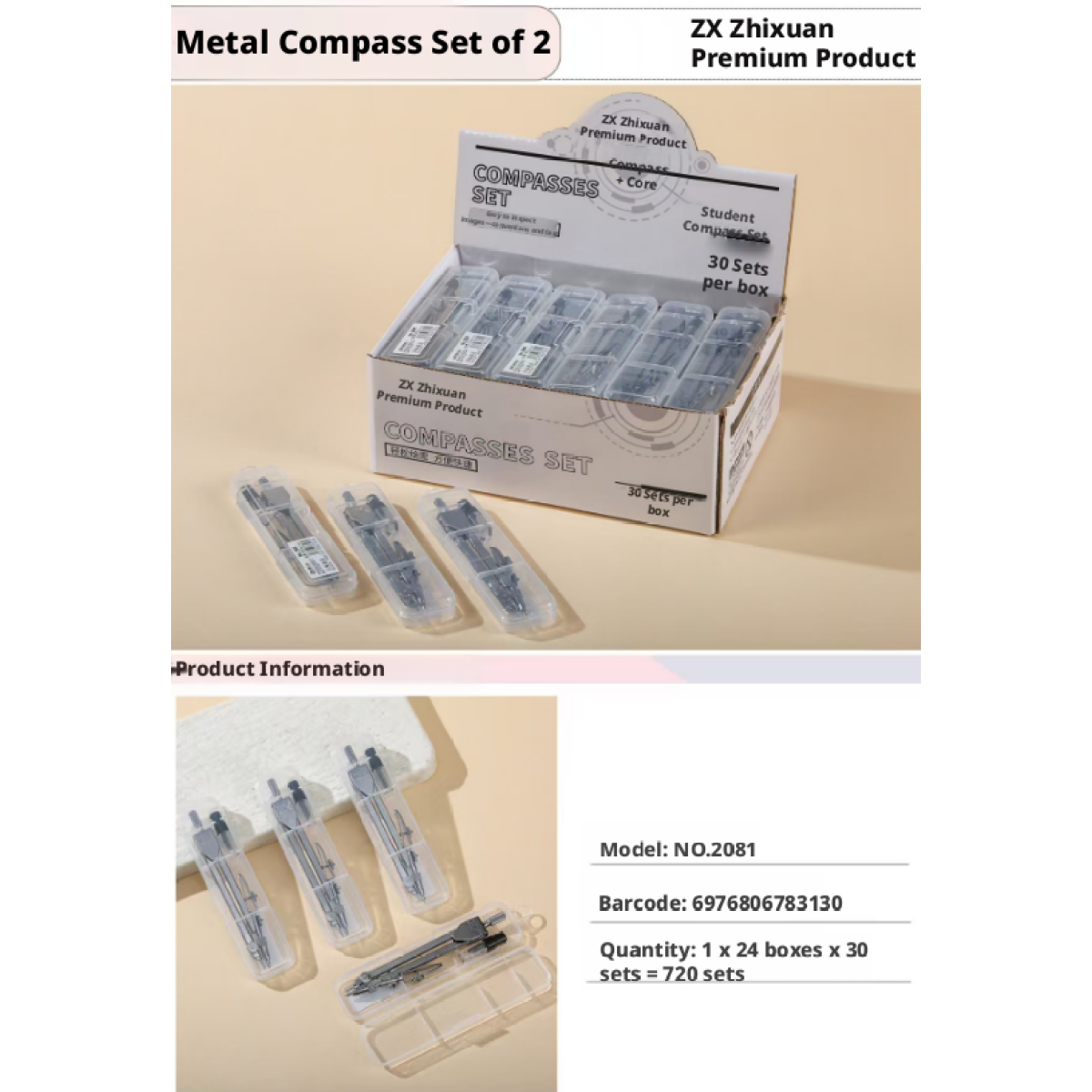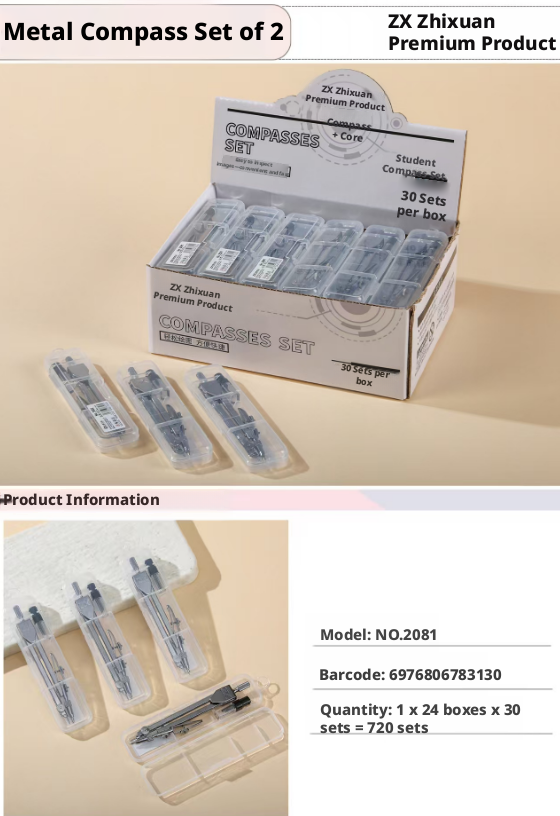Student Compass Set-Compass + Gauge Core-Silver Gray-Metal-1 set