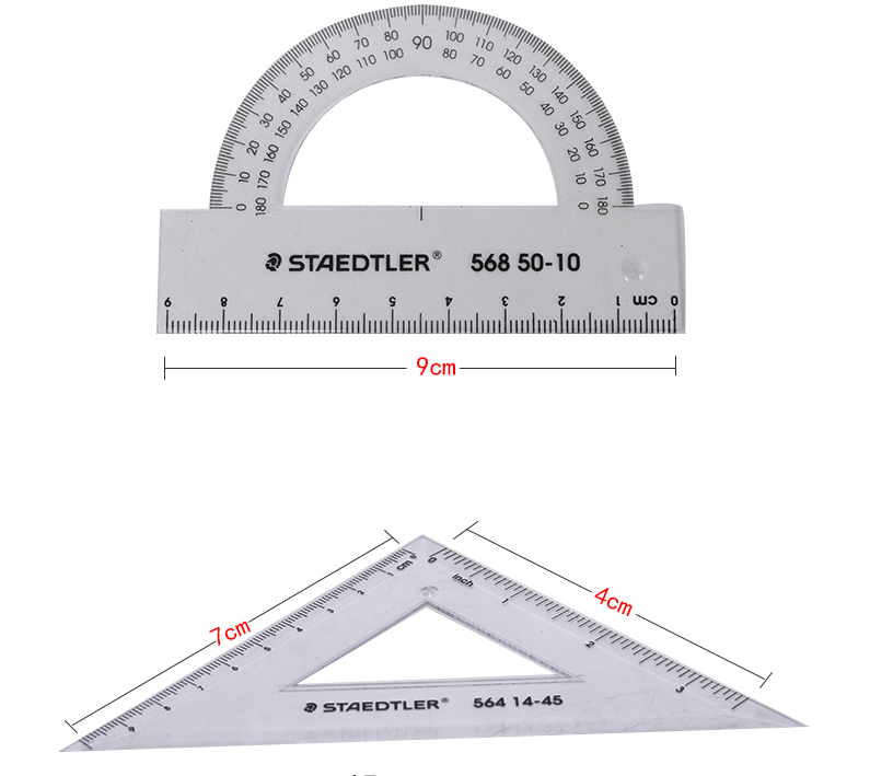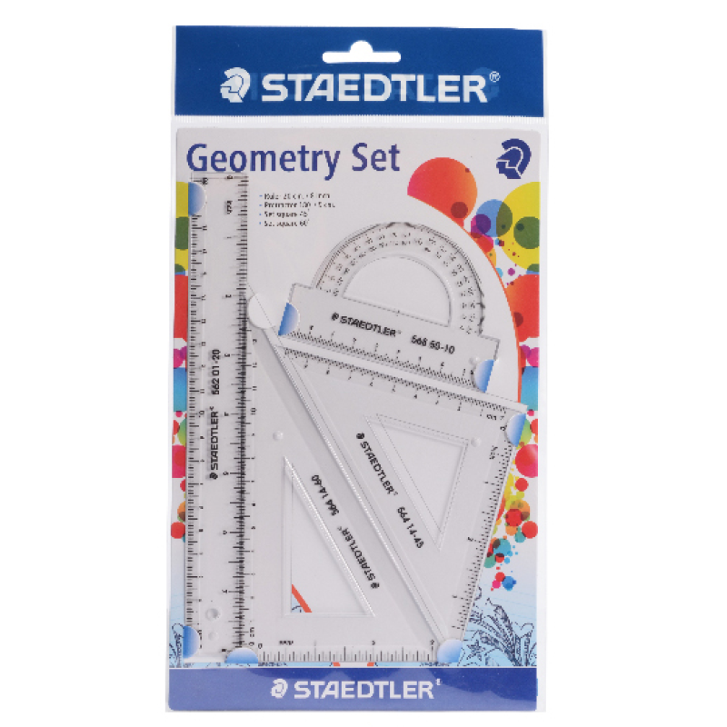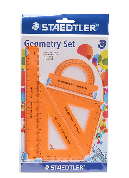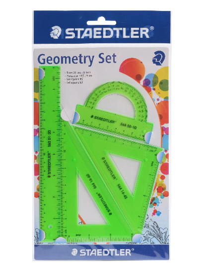 Specifications: ruler, 30° triangle, 45° triangle, protractor