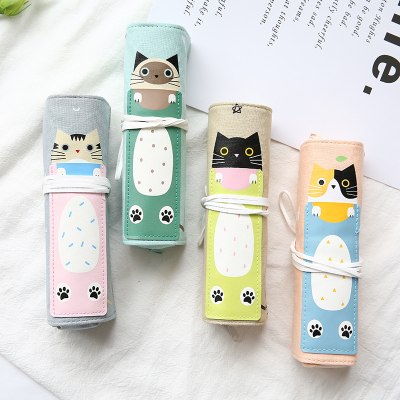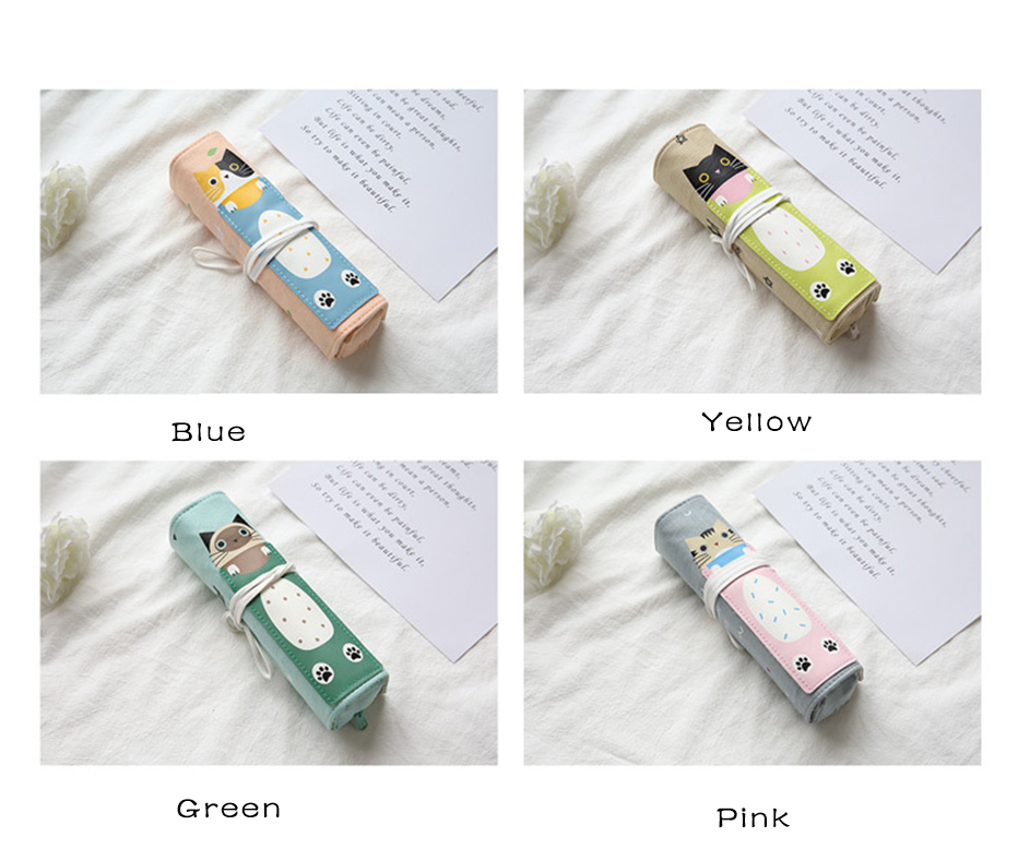 Green Cat, (Odd) Rolling Pencil Case/Yellow Cat, (Odd) Rolling Pencil Case/Pink