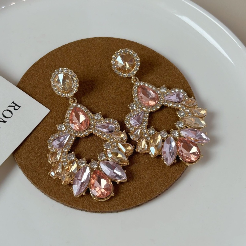 Style Bright Geometric Rhinestone Earrings For Women Retro