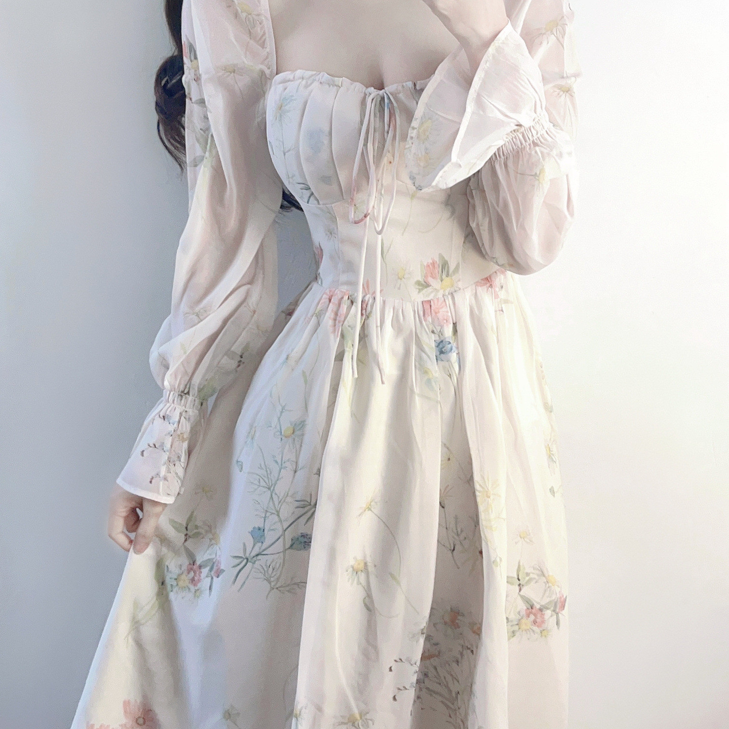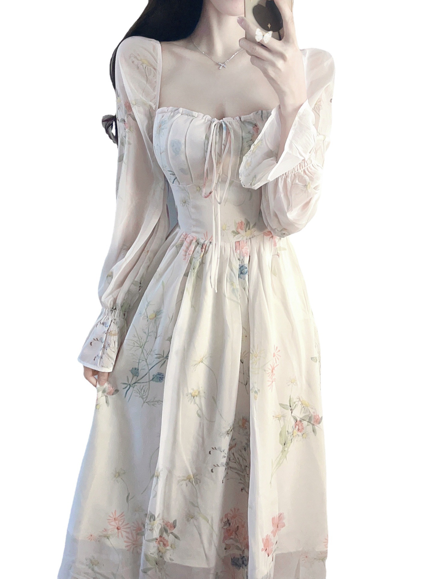 Color classification: white floral dress, short floral dress