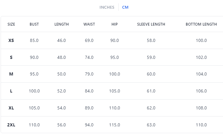 Size: XS/S/M/L/XL/XXL
