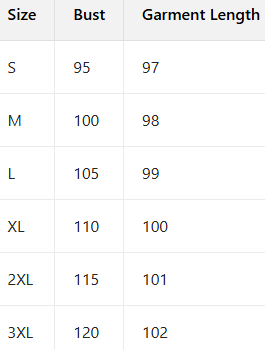 Sizes: S, M, L, XL, 2XL, 3XL