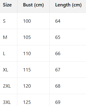Sizes: S, M, L, XL, 2XL, 3XL