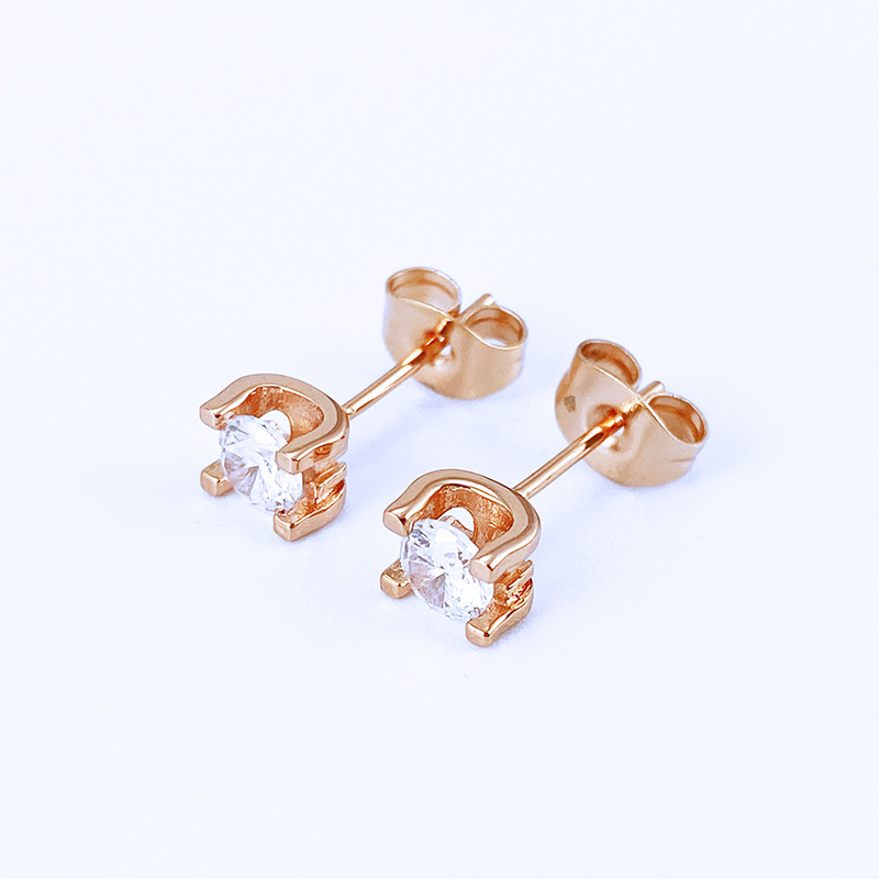 Color: cow head single rhinestone ear studs. Champagne Gold