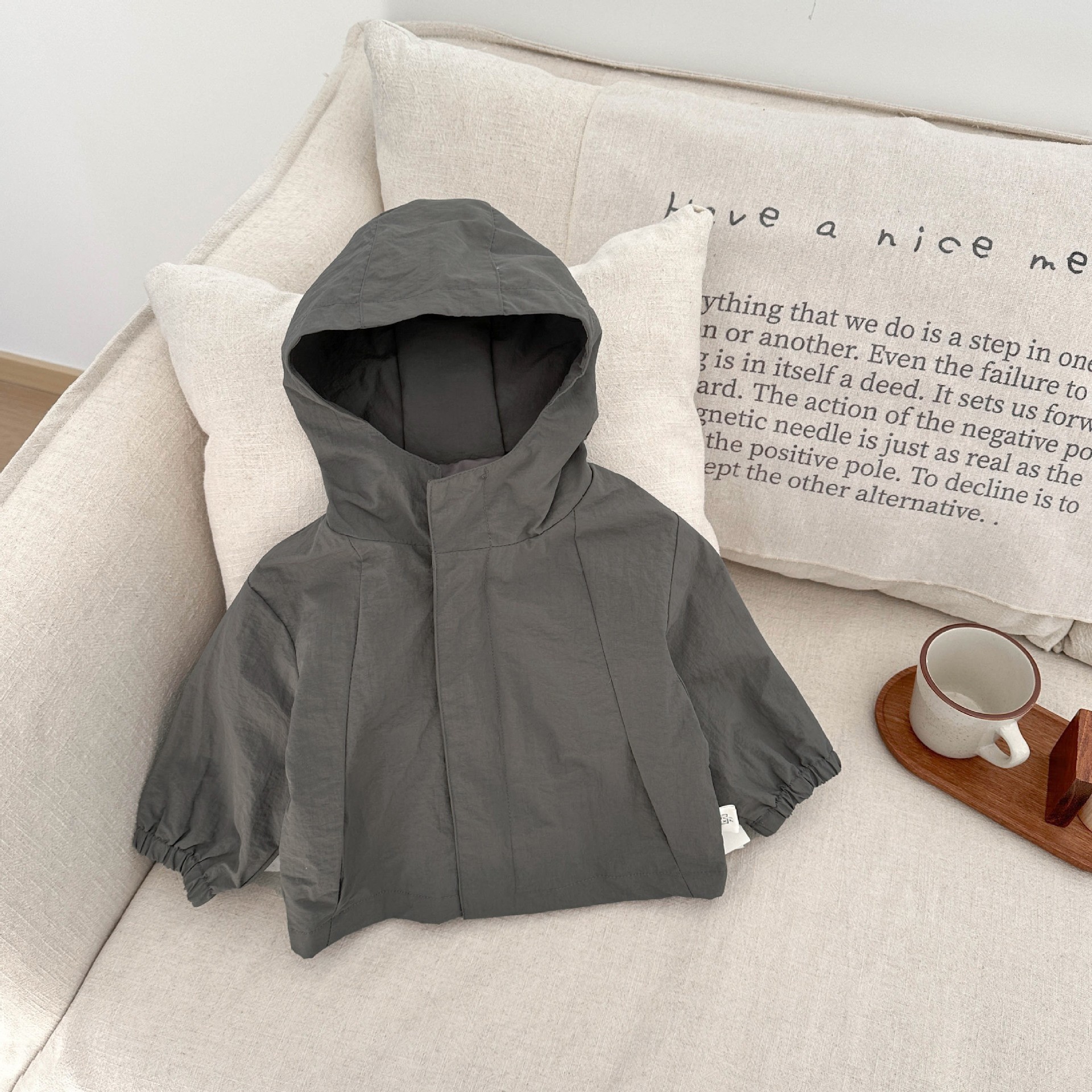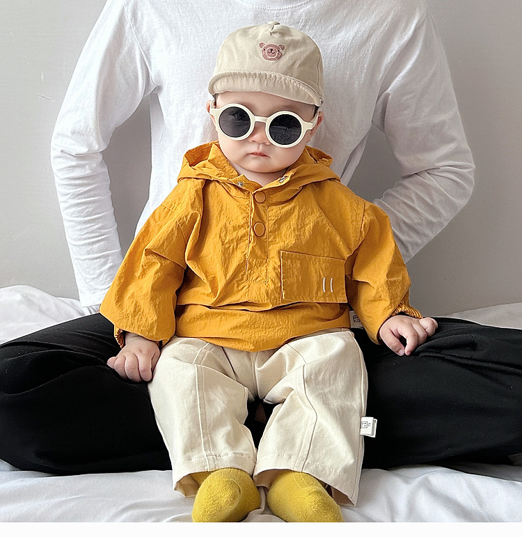 Colors: Blue Jacket, Yellow Jacket, Apricot Cropped Pants, Purple Trench Coat, Green Trench Coat, Blue Trench Coat, Purple Waterproof Jacket, Blue Waterproof Jacket, Yellow Waterproof Jacket, Cartoon-Printed Jacket, Colorblock Jacket, Purple Jacket, Gray Jacket