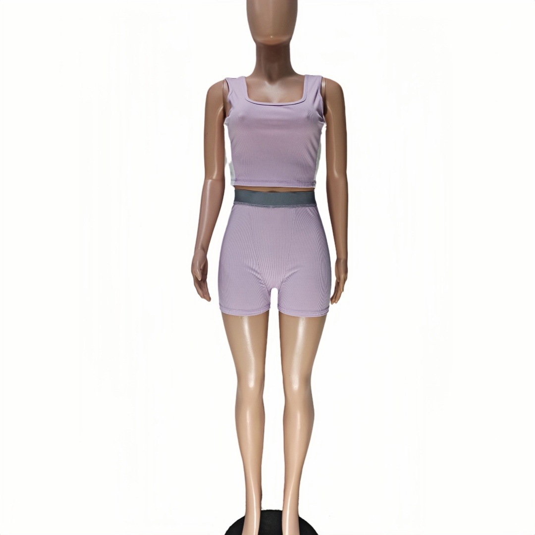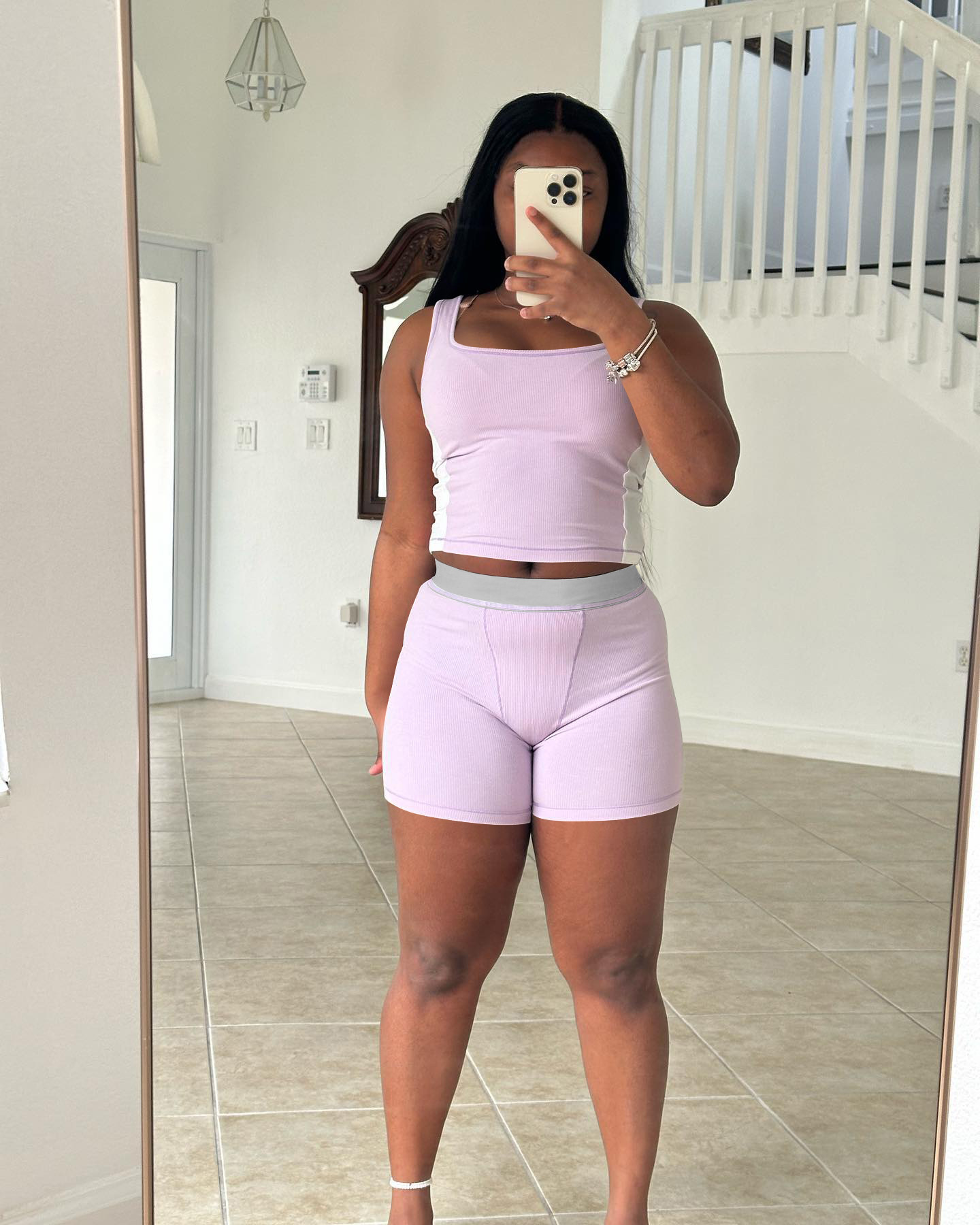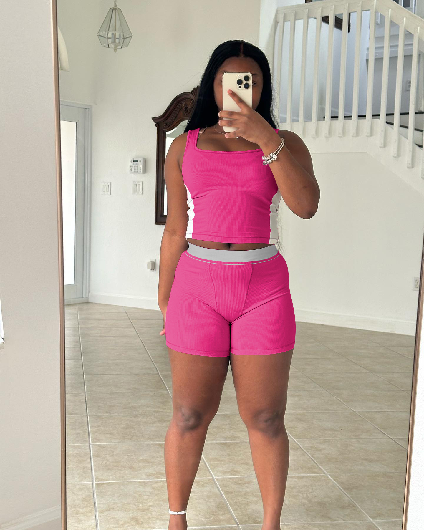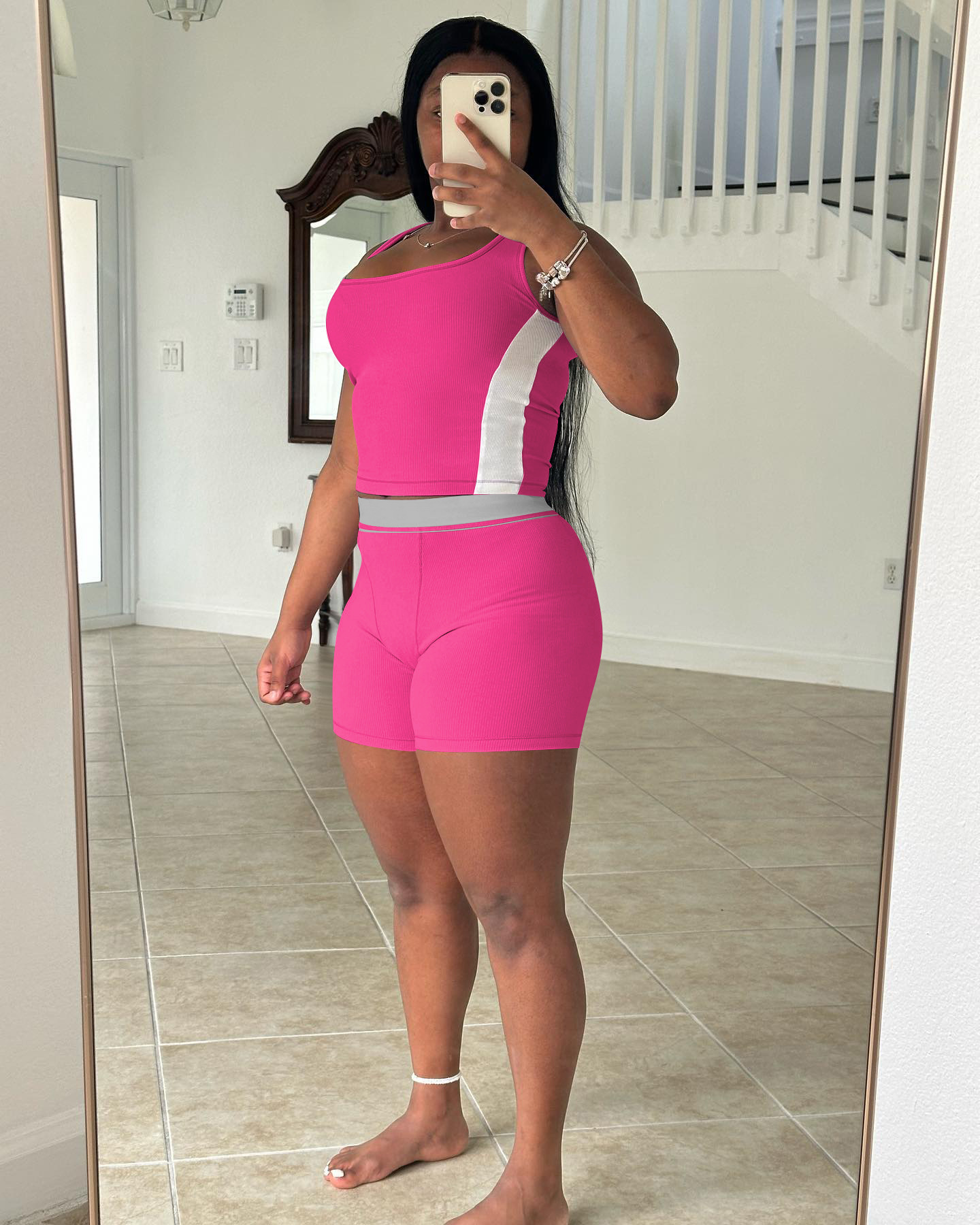 Stylish Casual Ribbed Patchwork Two-piece Set