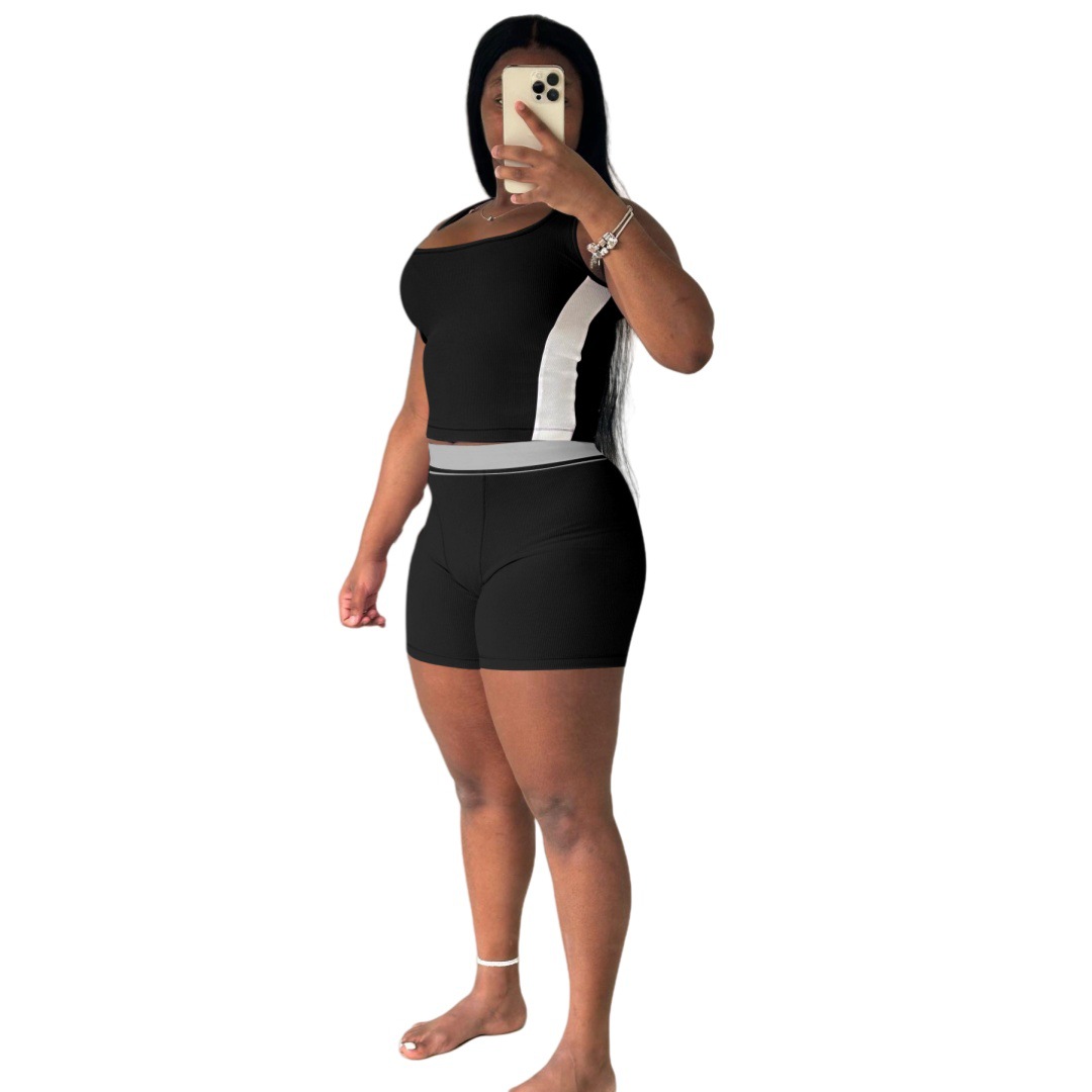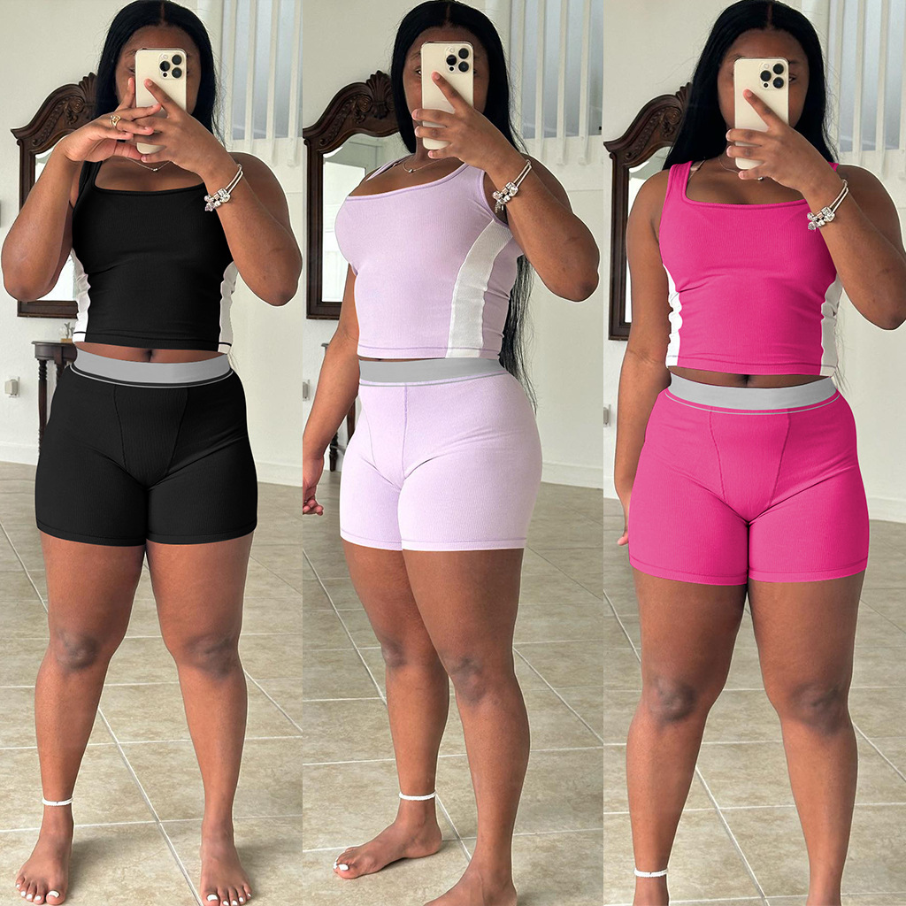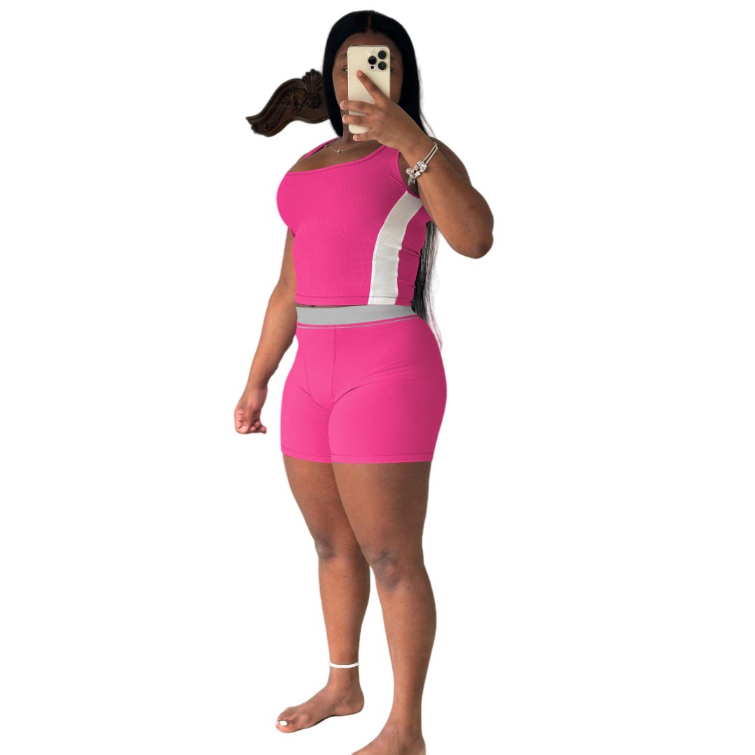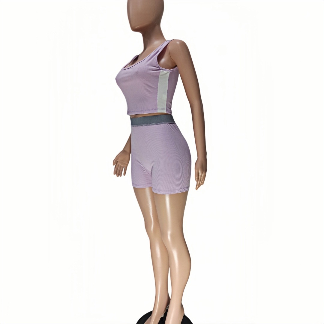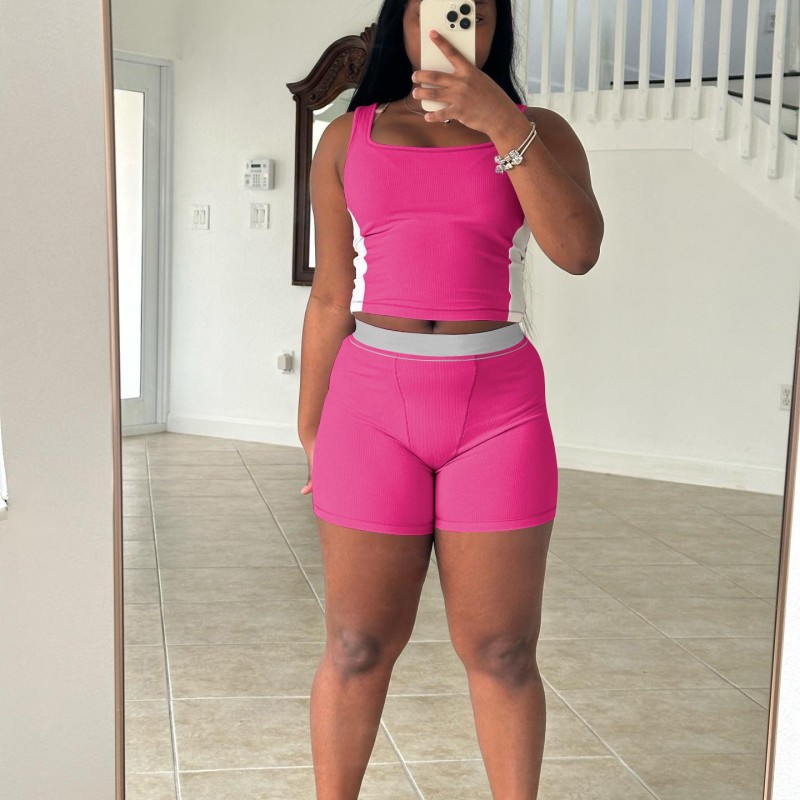 Stylish Casual Ribbed Patchwork Two-piece Set