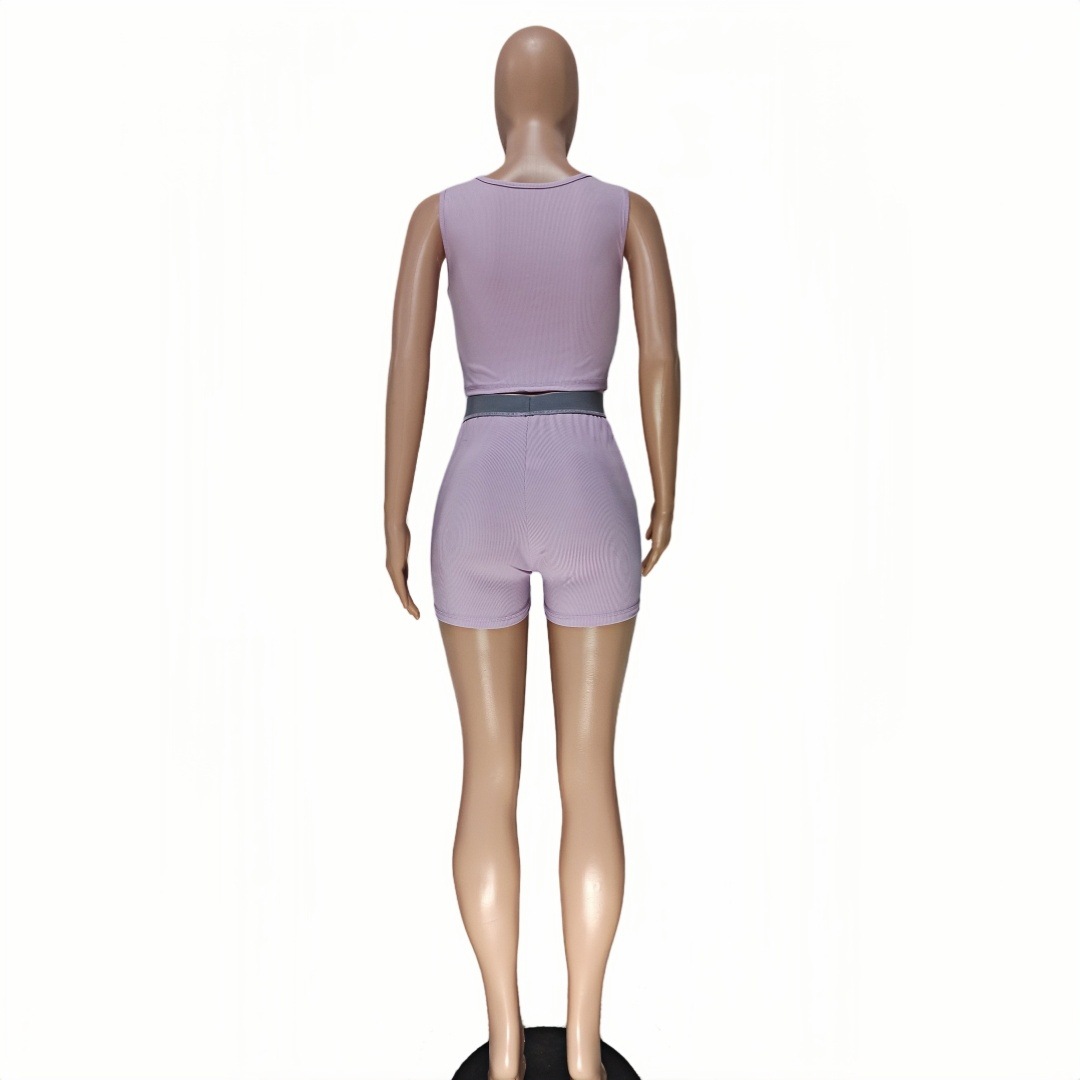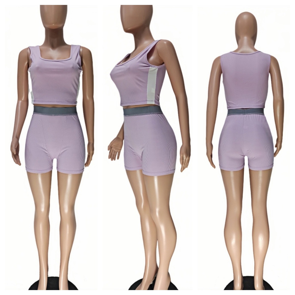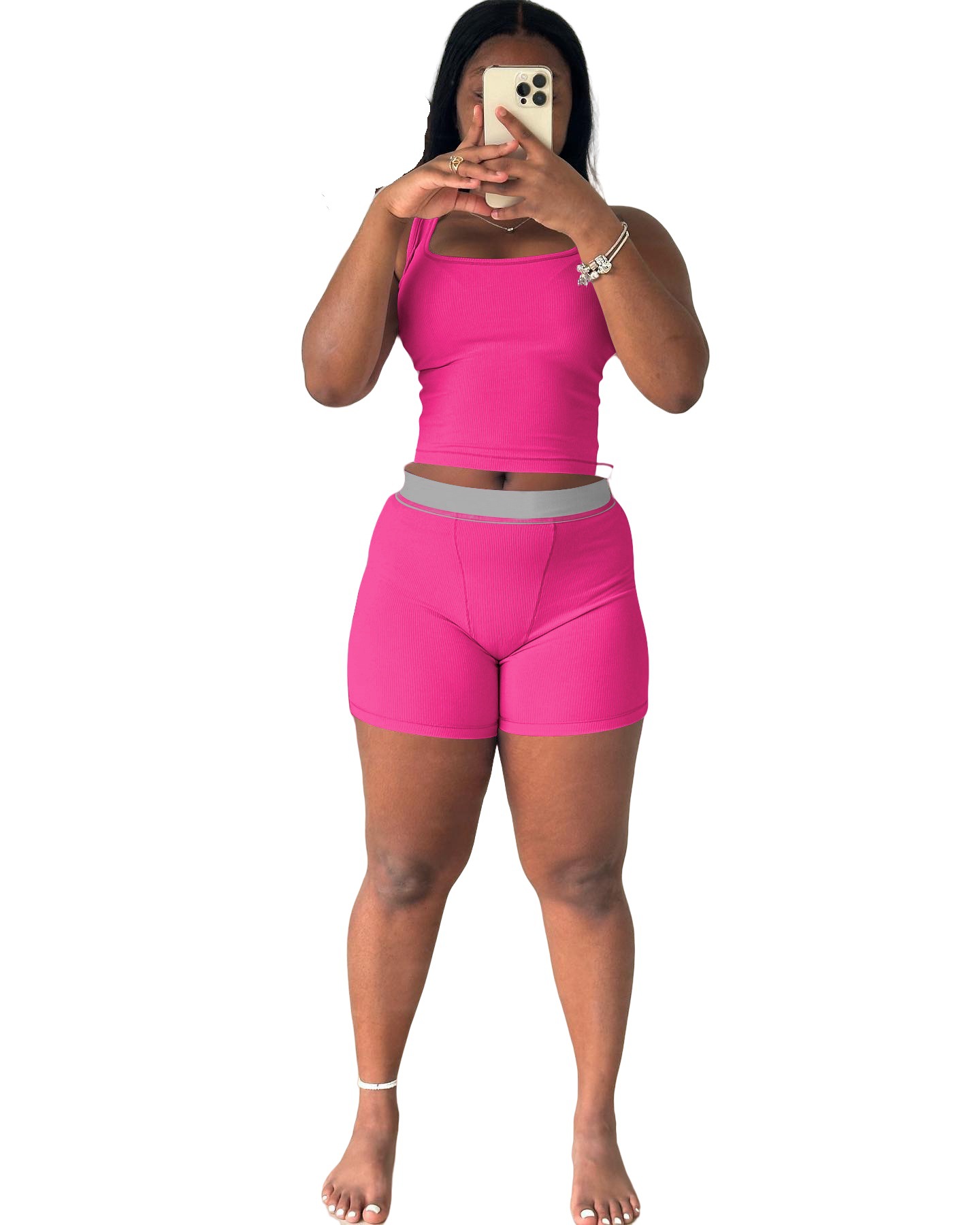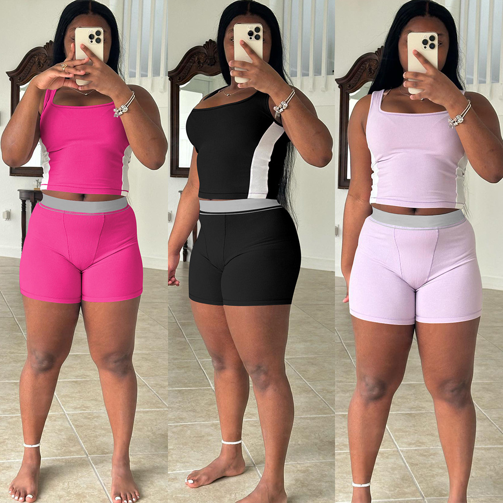Stylish Casual Ribbed Patchwork Two-piece Set