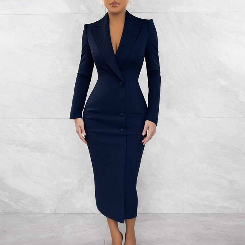 Stylish Everyday Commuter Solid-color V-neck Button-fit Dress