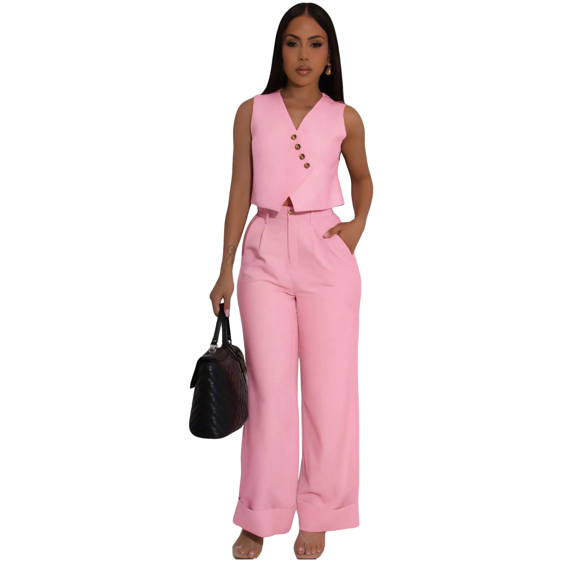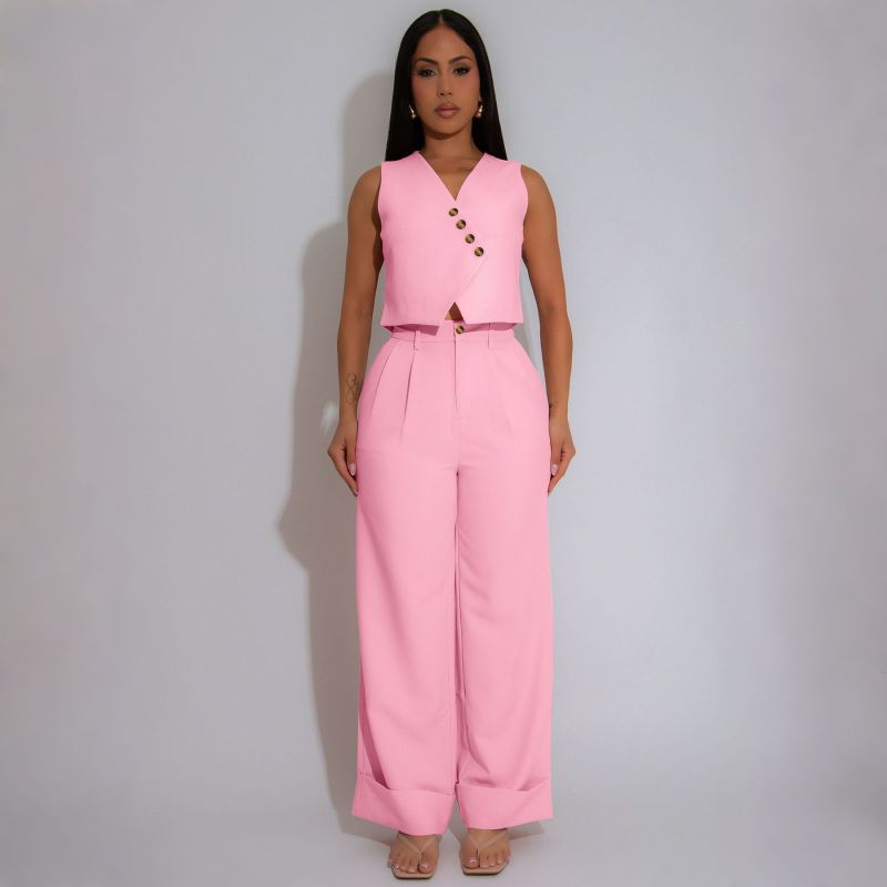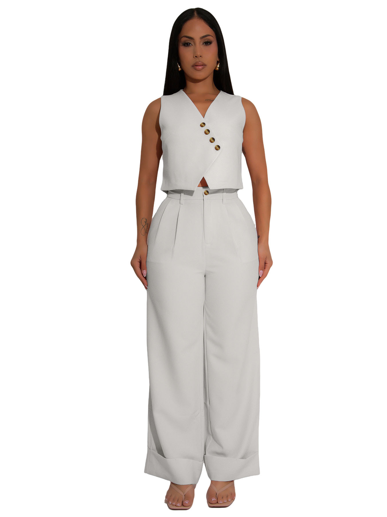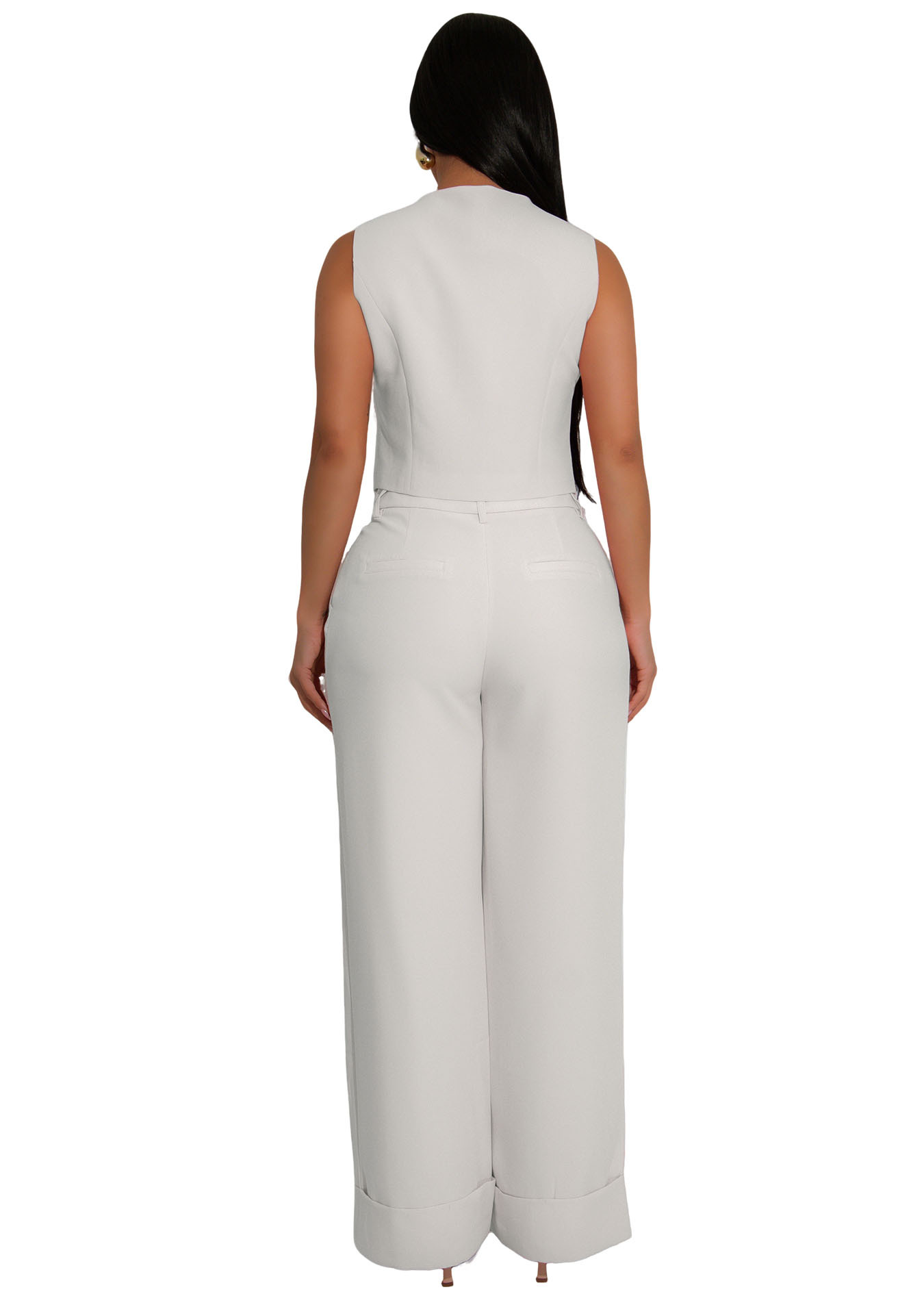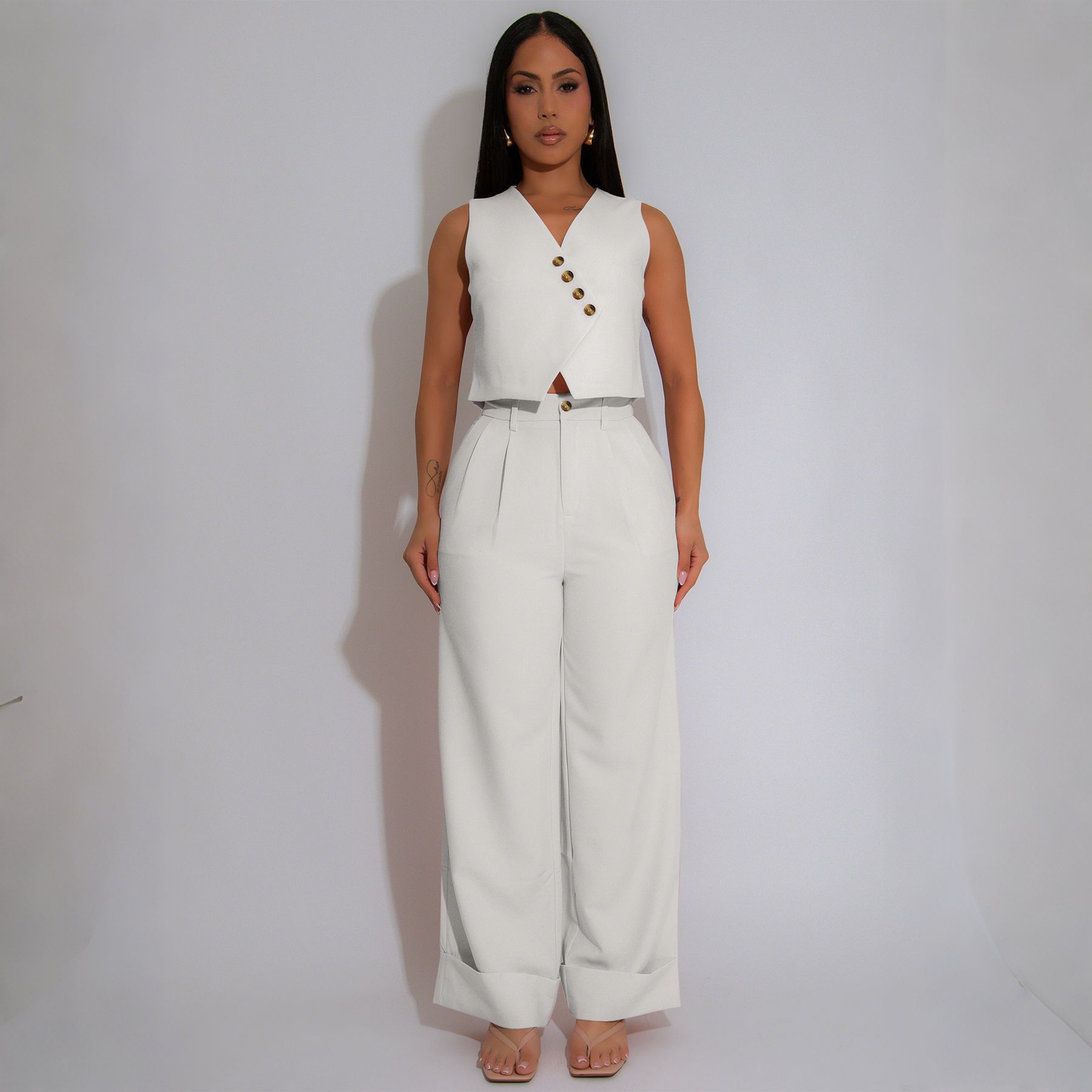 Stylish Minimalist Sleeveless Wide Leg Womens Suit