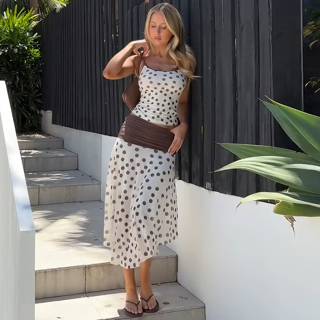 Trending elements: Contrasting color design, open-back