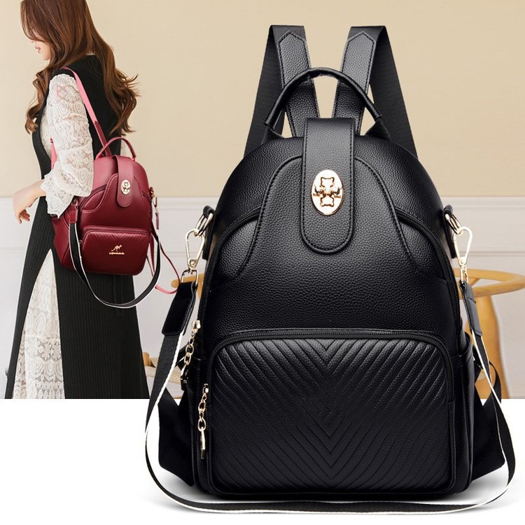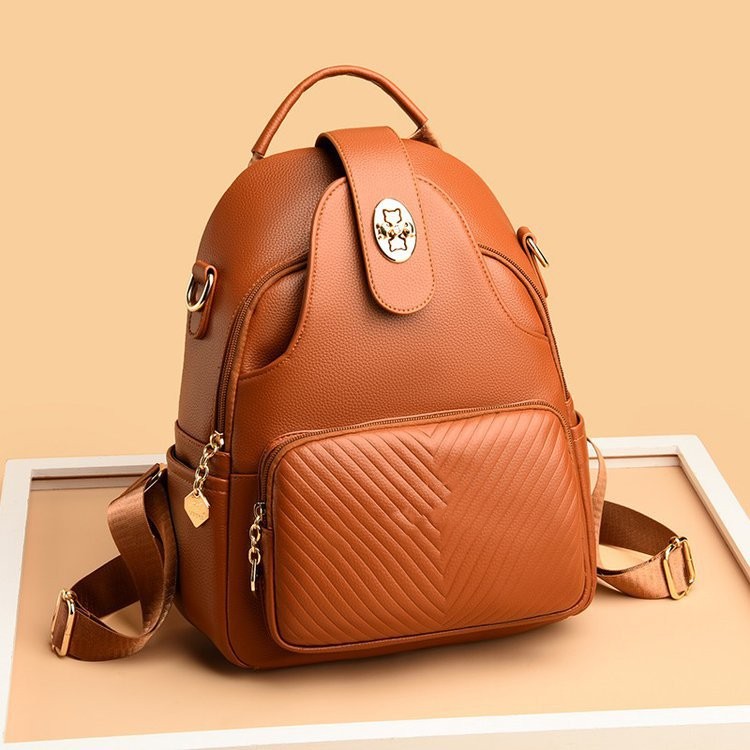 Stylish Multifunctional Backpack Women's Portable Pu Shoulder Backpack