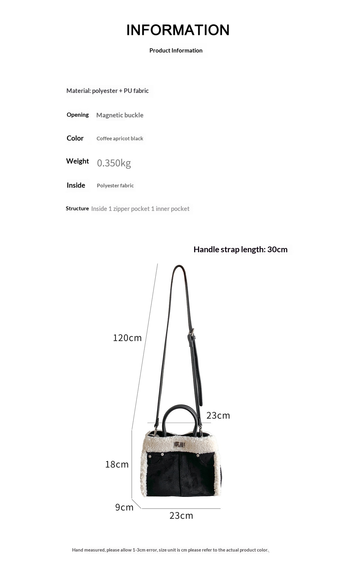 Colors: apricot, coffee, black