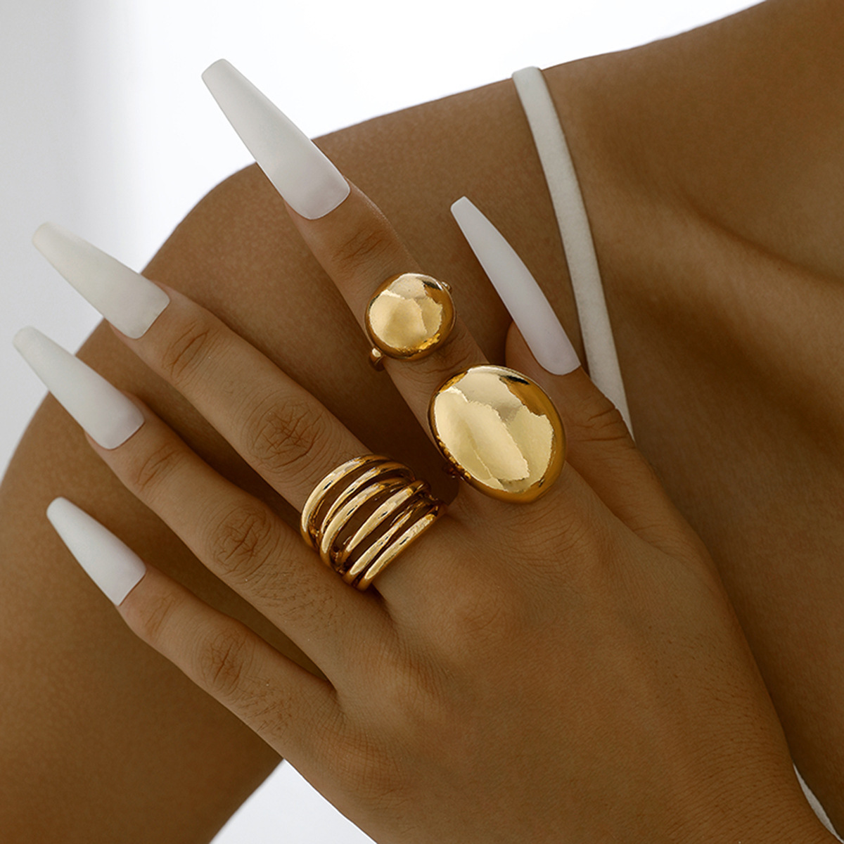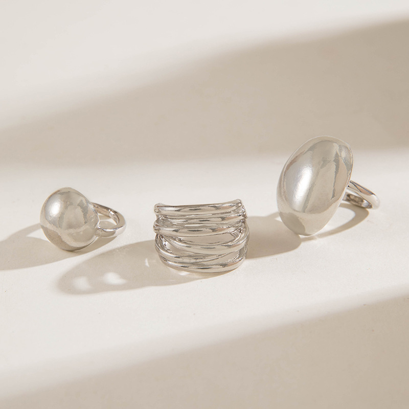 Stylish Personalized Smooth-Finish Irregular Ring Set