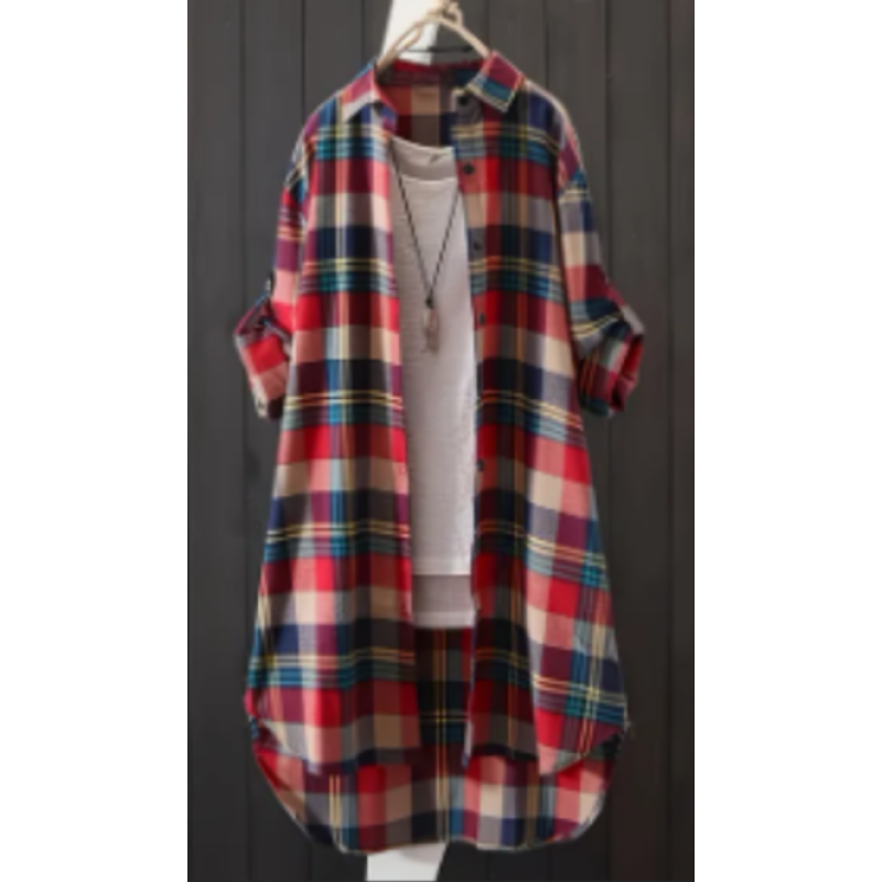 Stylish Plaid Print Womens Shirt - Classic Polo Collar With Button Closure - Long Sleeve Casual Wear For Spring & Fall - A Wardrobe Staple For Trendy Ladies