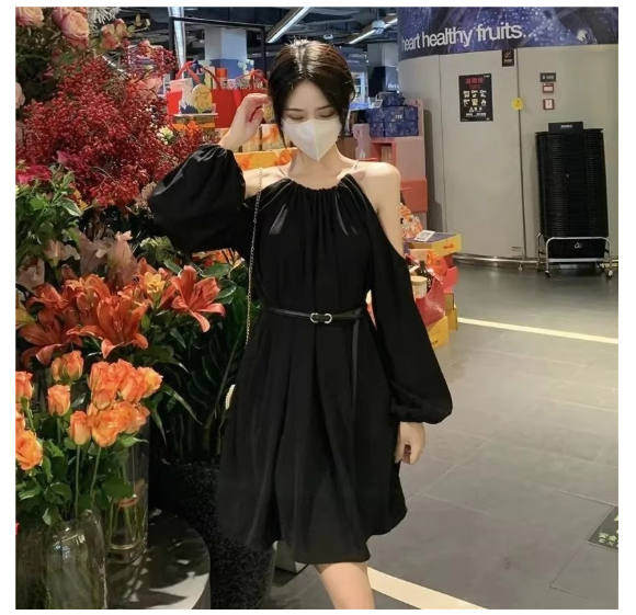 Stylish Relaxed-fit Long-sleeve Dress For Women