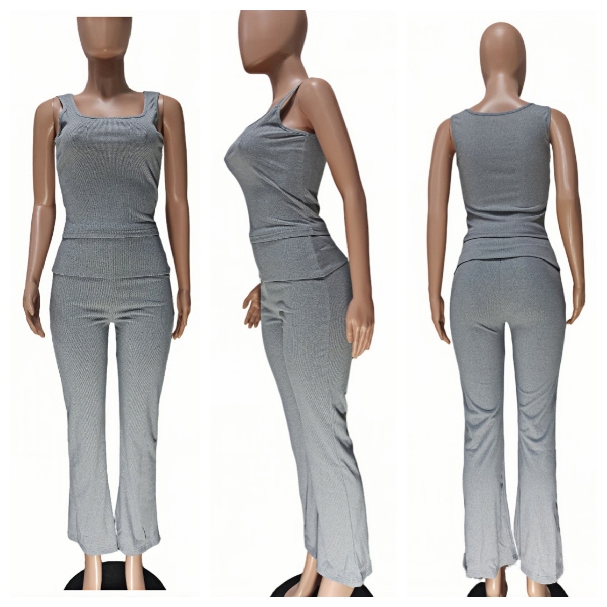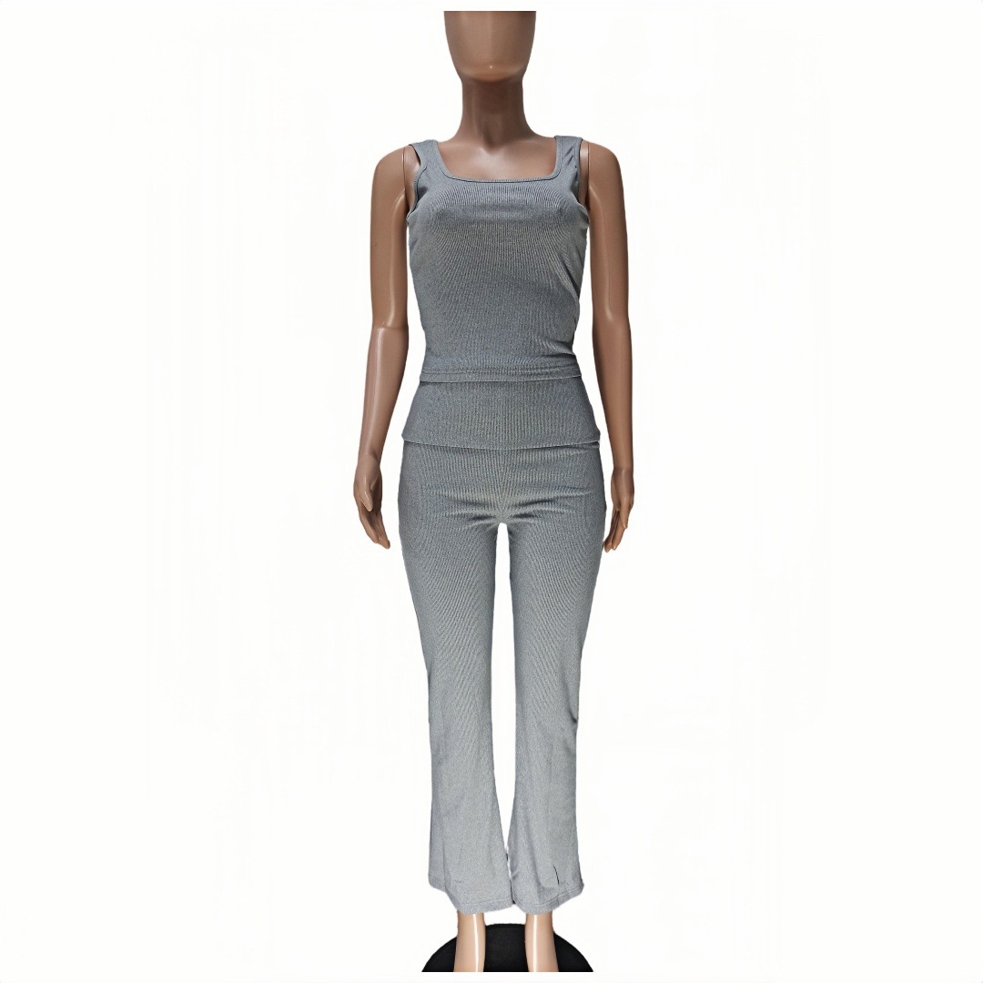 Stylish Ribbed Tank Top With A Fold-over Two-piece Set