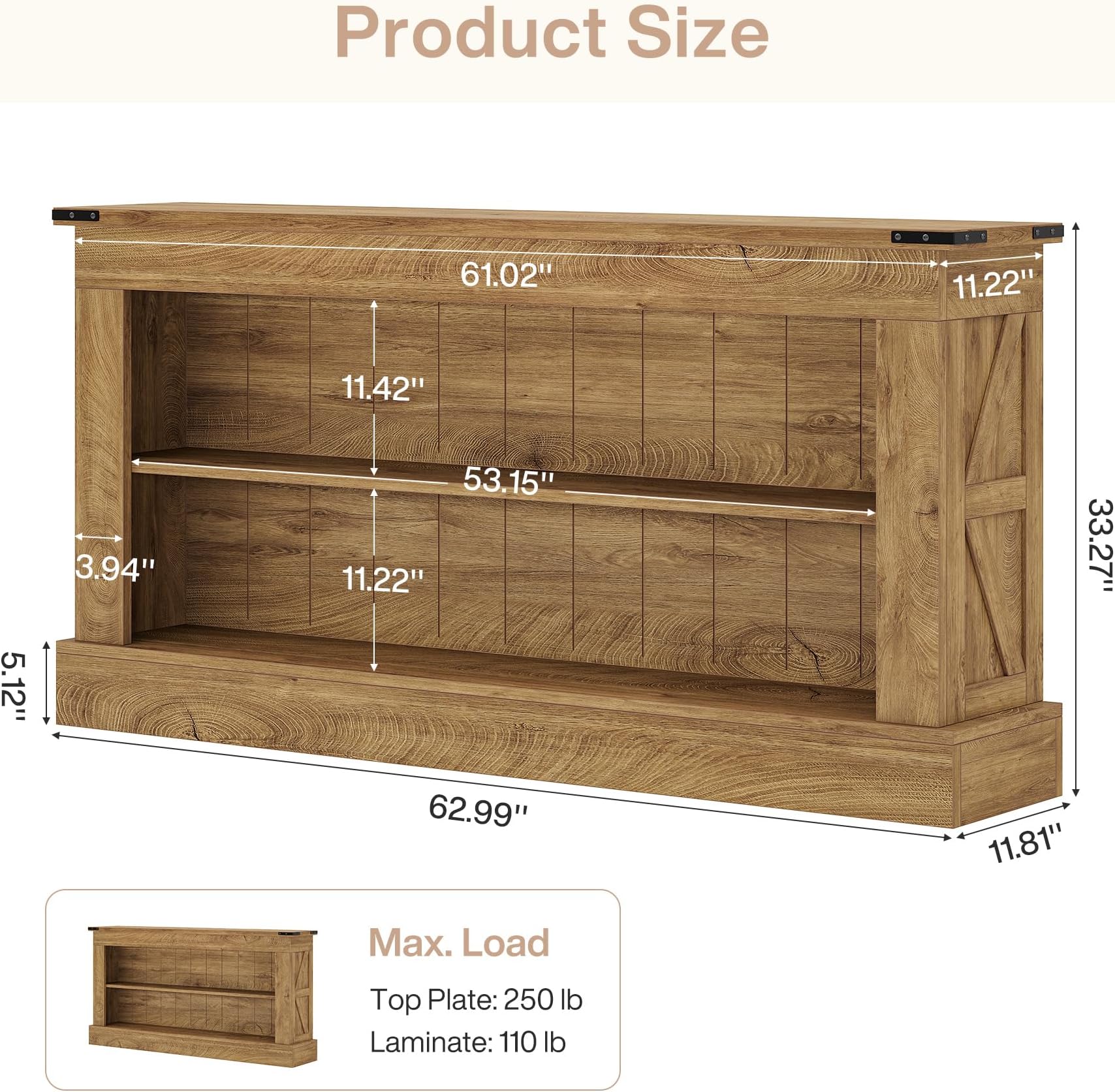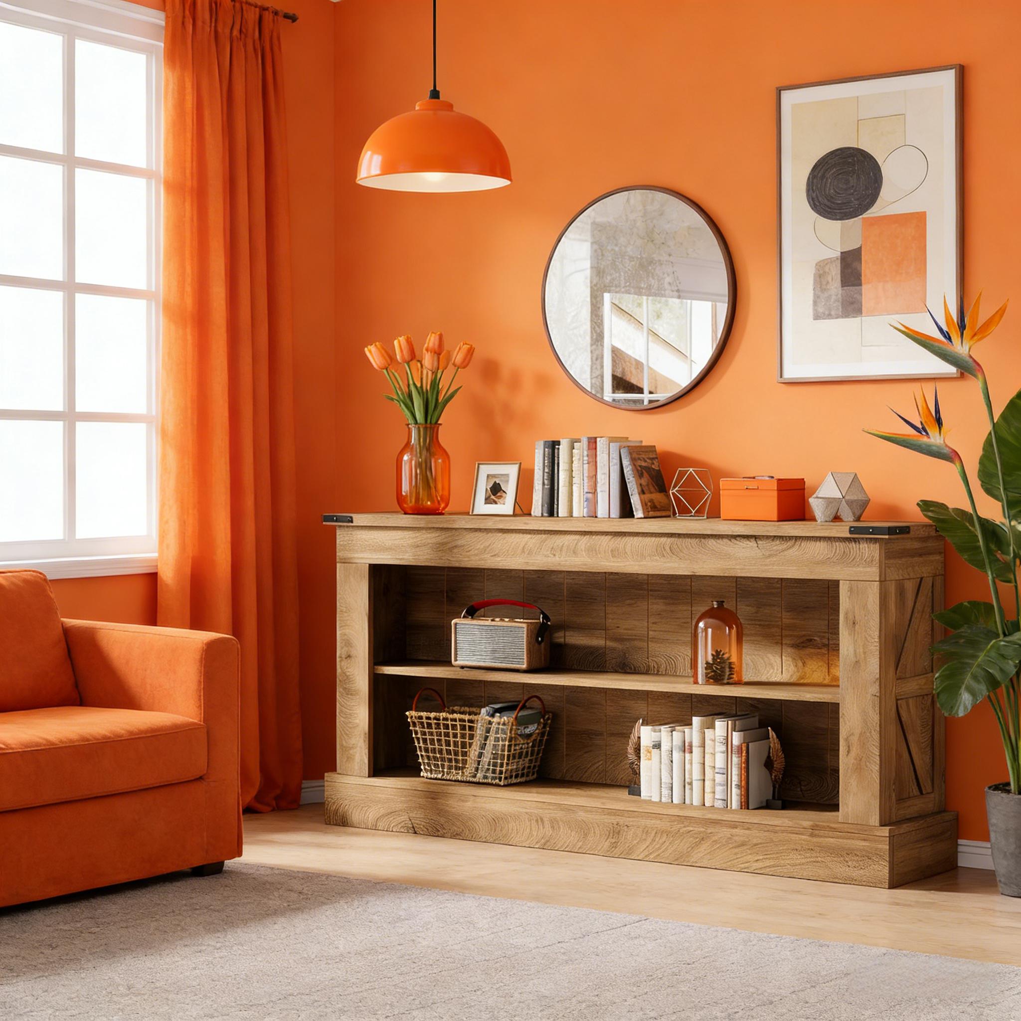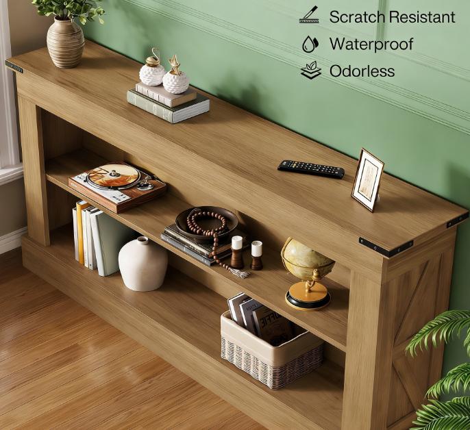 Important Reminder!!! 1) Attention: All products in our store do not support Canada self pickup ordering. Please do not create shipping labels for Canada. Our American products do not support self pickup to Canada 2)We do not ship to Alaska, Hawaii, US protectorates (e.g., Puerto Rico), P.O. boxes, or APO/FPO addresse 3)We don’t accept non-defective remorse returns Farmhouse Style - Our console table, with its and natural wood grain finish, brings a vintage aesthetic to your living room or entryway. Dual-Layer Storage - This entry table features two decorative shelves for extra storage—perfect for displaying décor or decluttering your space. Durability - Made from high-grade MDF, our console table can handle everyday use and supports up to 300lbs—ideal for storing heavier items. Flexibility - This versatile accent table fulfills multiple roles, like a TV stand, bar table, or entryway organizer, adapting to your storage and display needs.