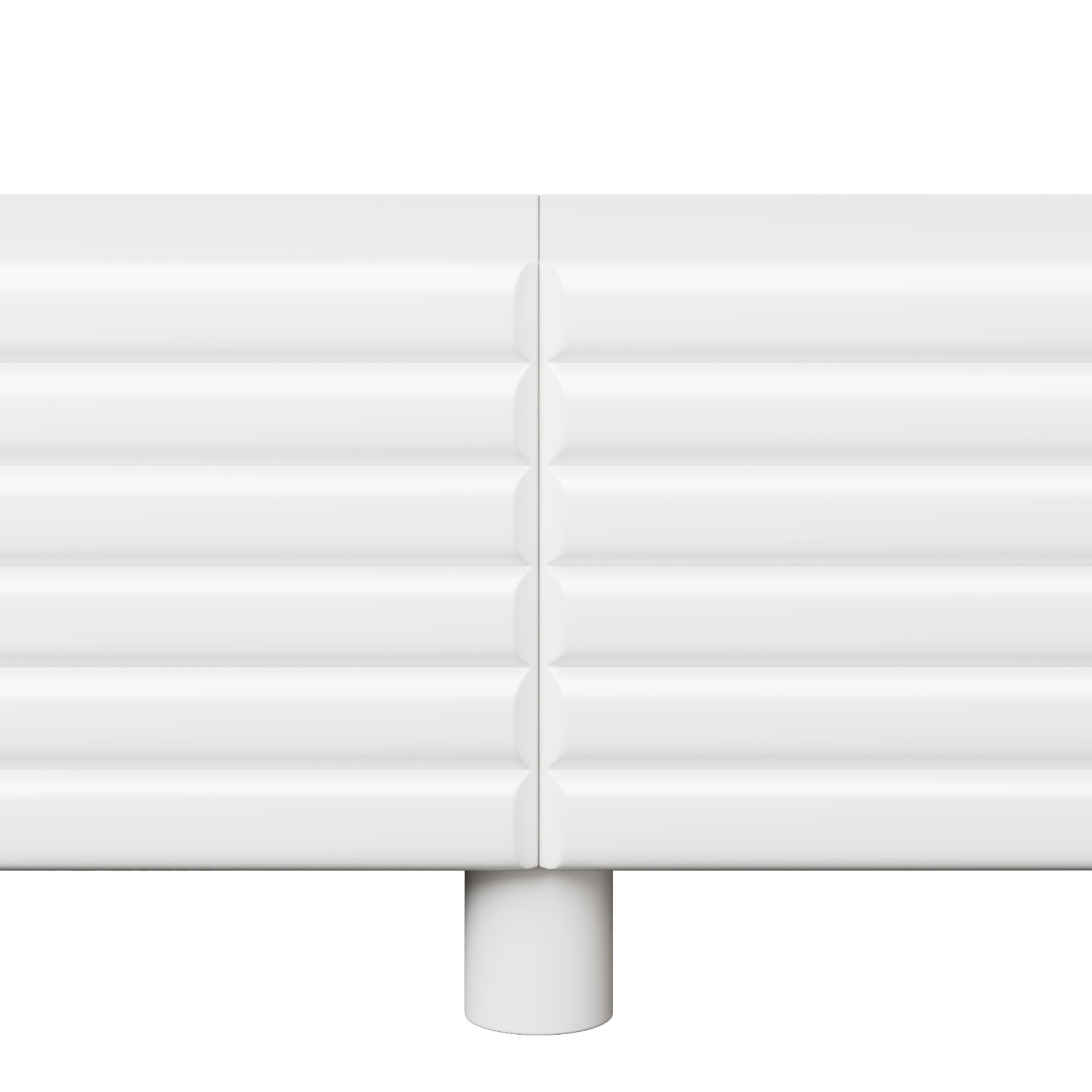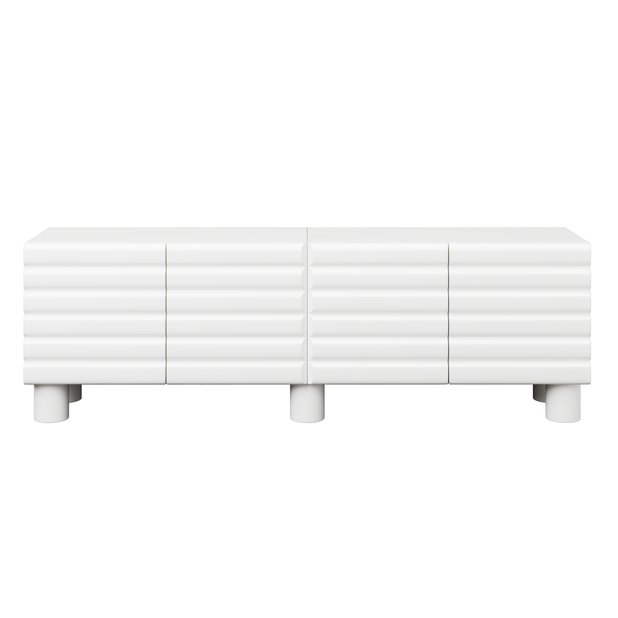 Transform your living room with this stunning TV stand, featuring an elegant wavy door panel design that adds a touch of modern flair to any space. The sleek, solid color finish adds a touch of sophistication, while the round cylindrical legs giving a soft, minimalist look to the overall aesthetic.