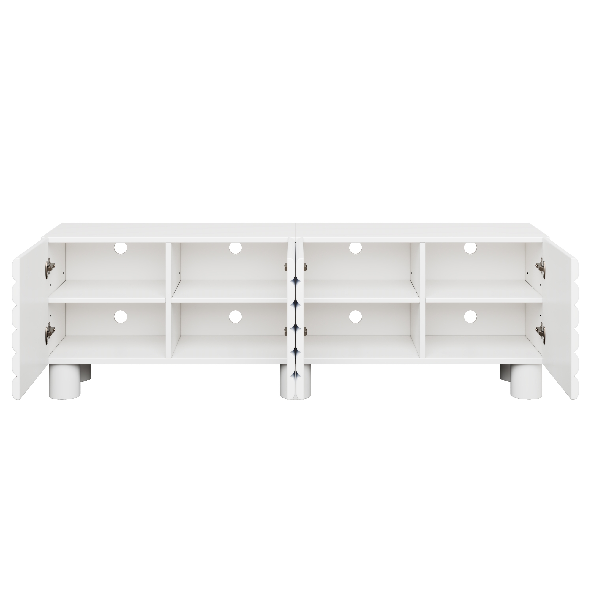 Product Name:Stylish Thick Wavy Door TV Cabinet with Adjustable Shelves, Cream Style TV Stand with 4 Cabinets for TVs Up to 75", Solid Media Console with Cylindrical Legs and Cable Holes for Living Room, White