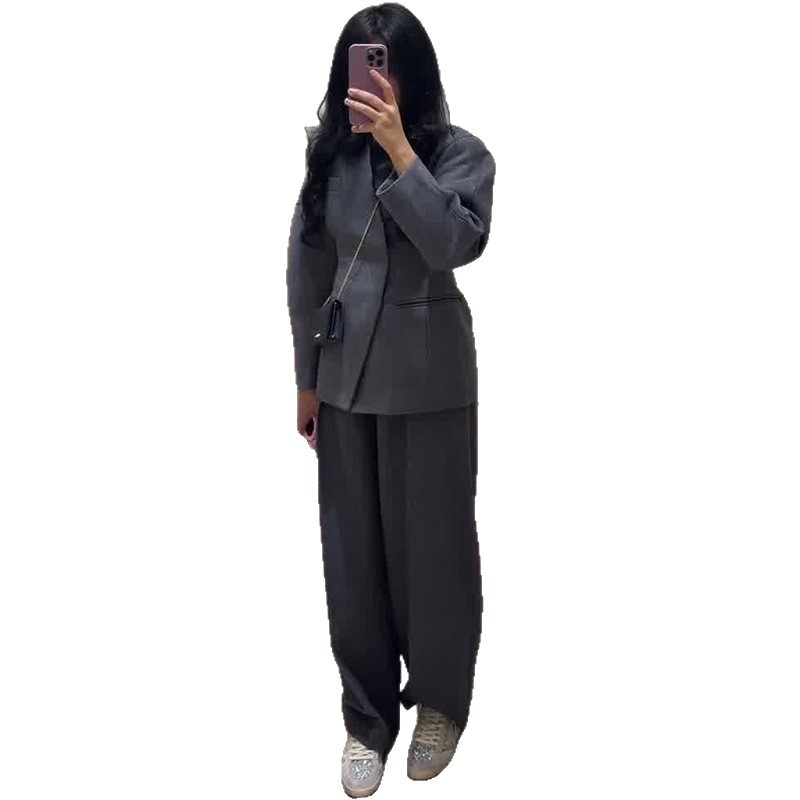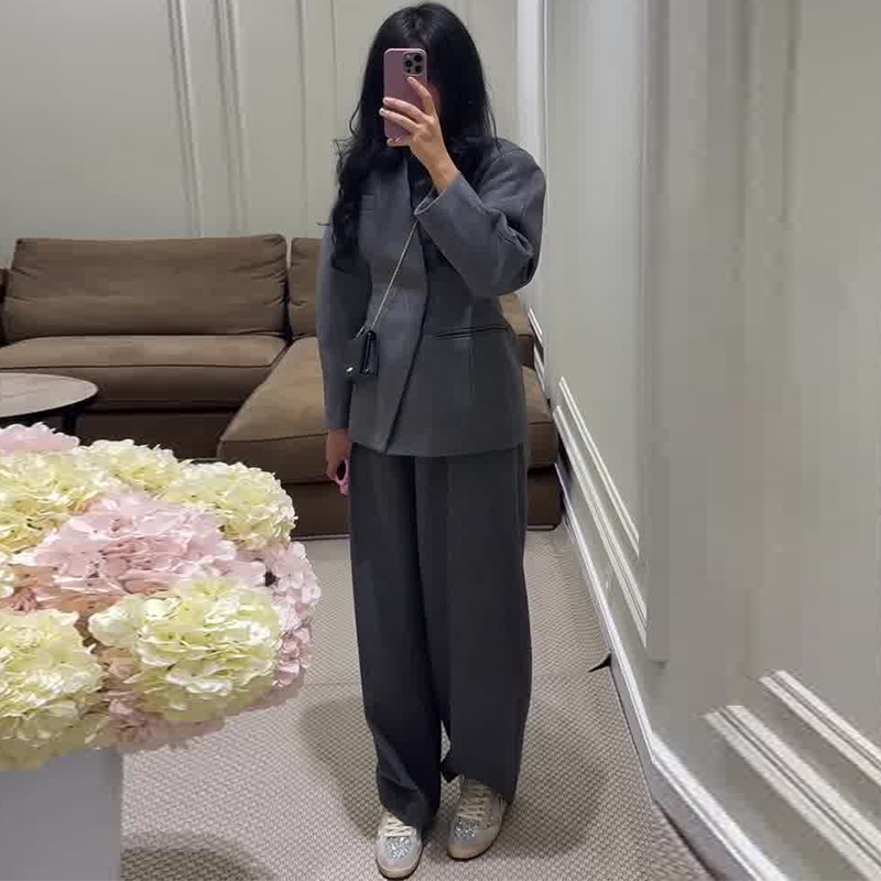 Stylish Two-Piece Set Minimalist Gray Fit-and-Flare Pants