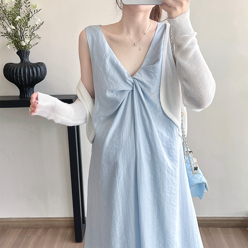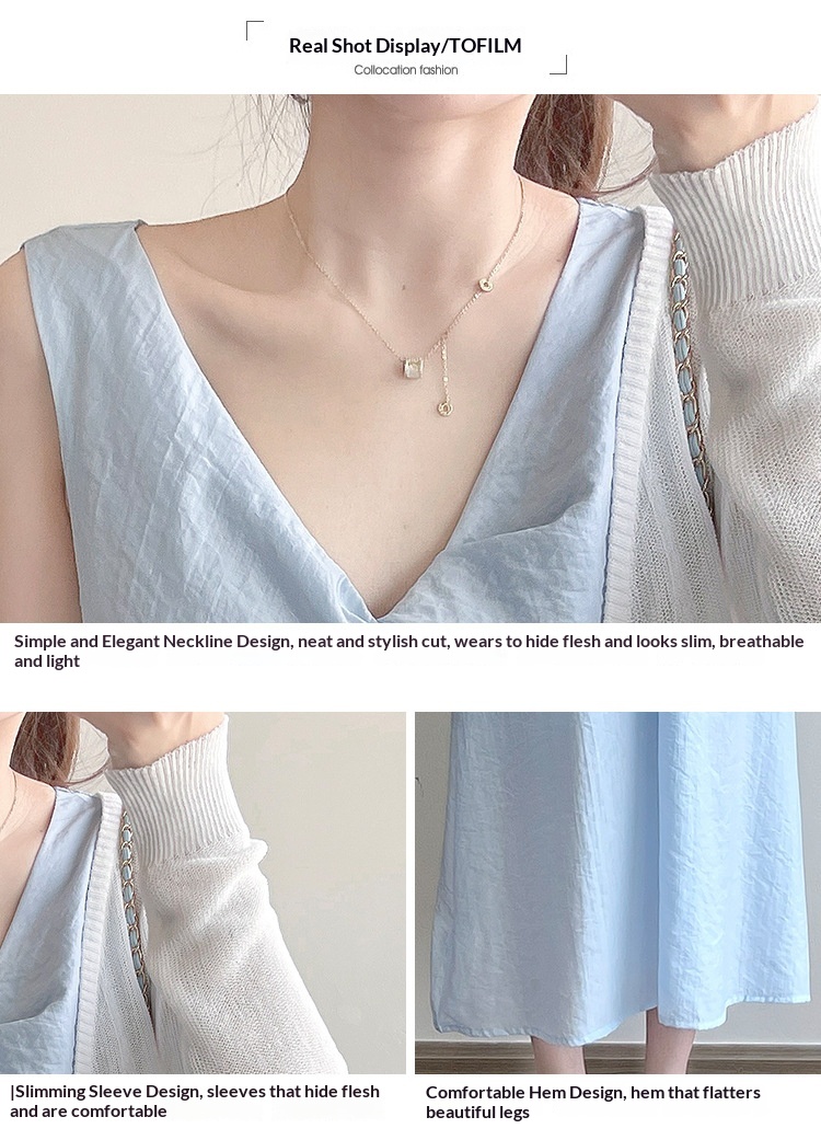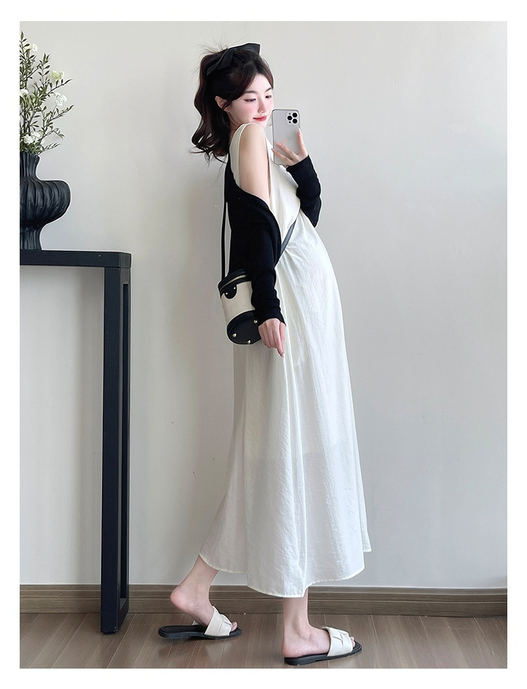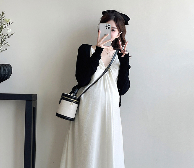 Color: White cardigan, black cardigan, blue skirt, apricot skirt