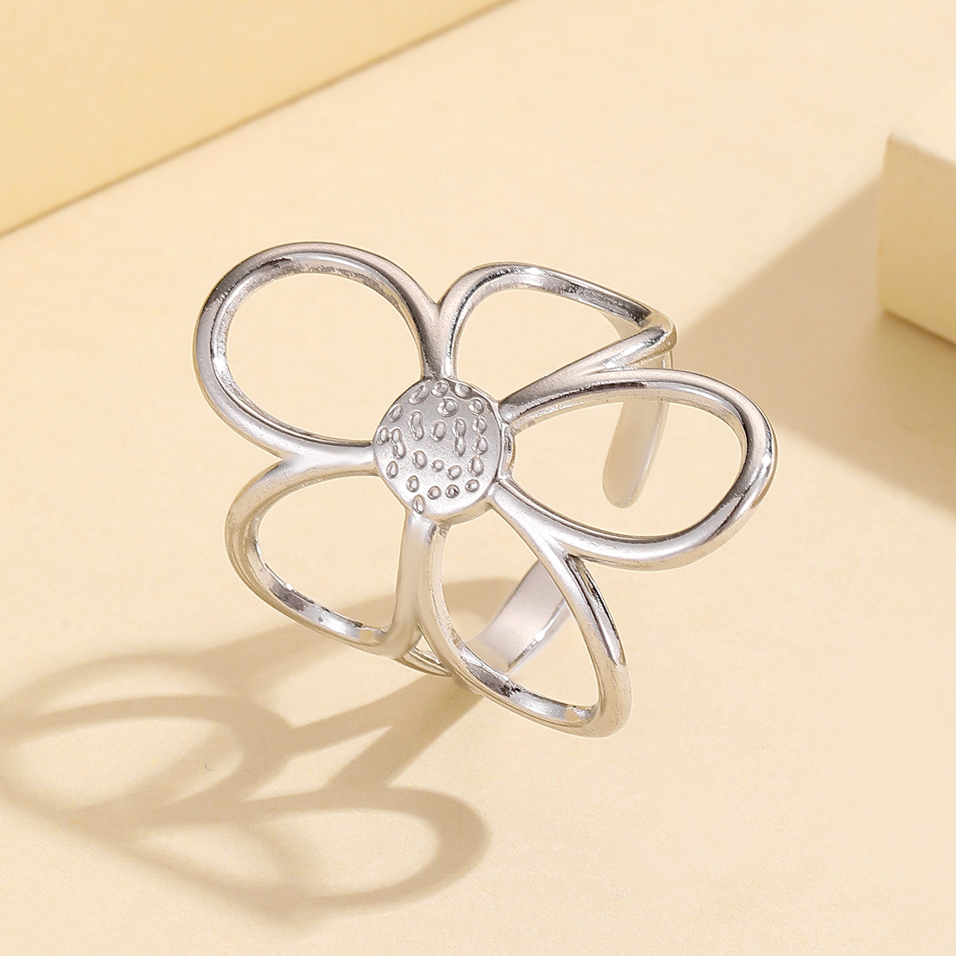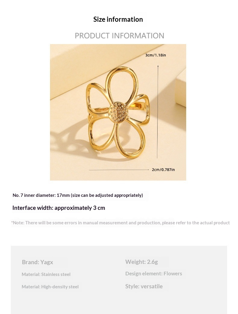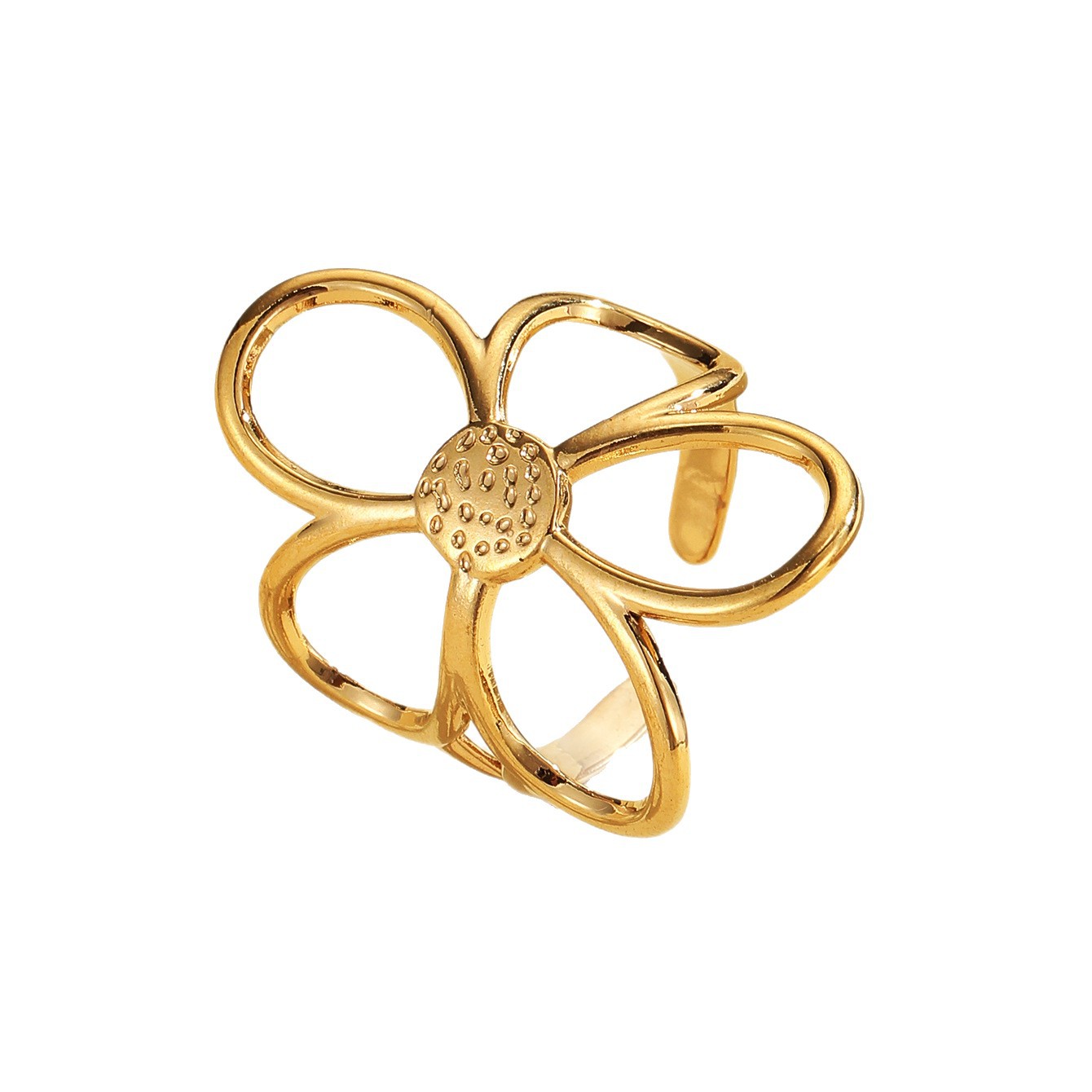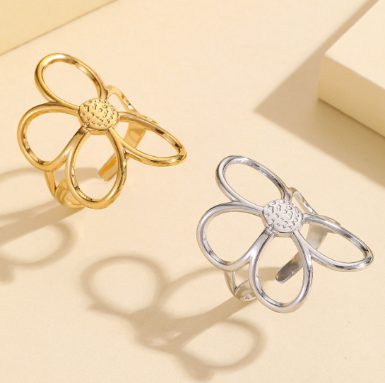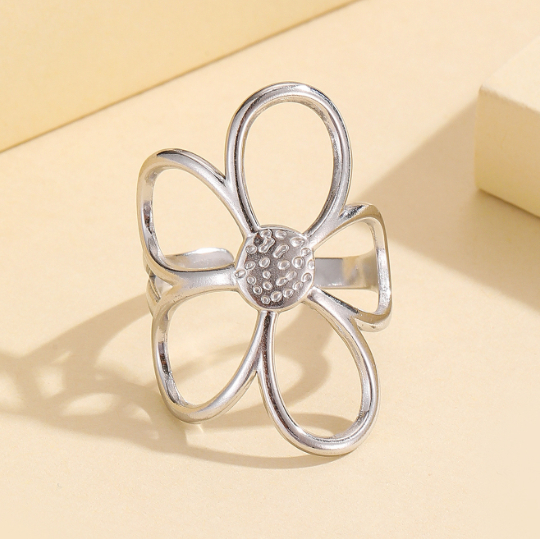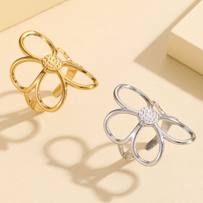 Stylish Versatile Hollow Flower Open Stainless Steel Ring