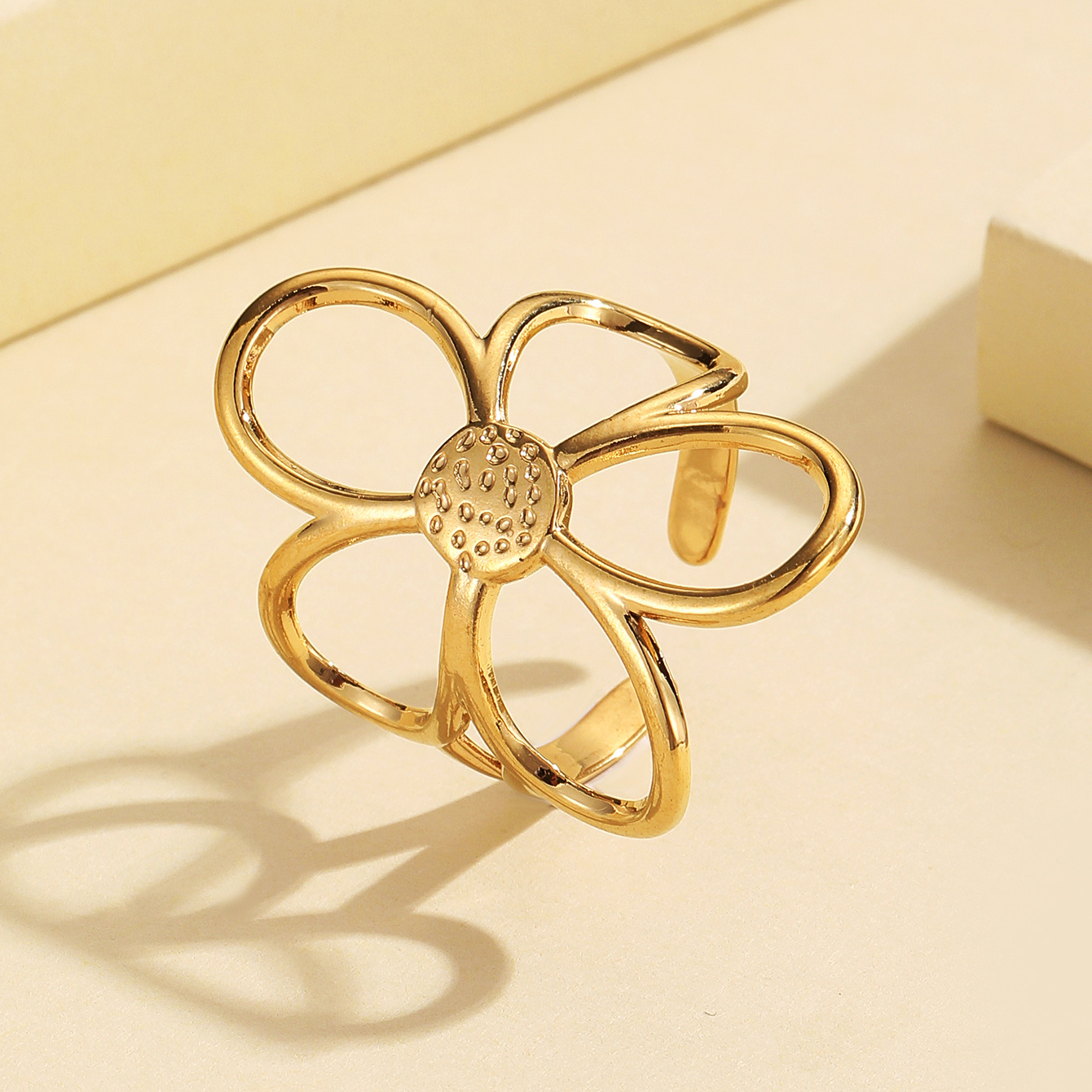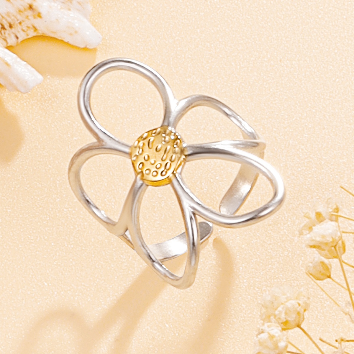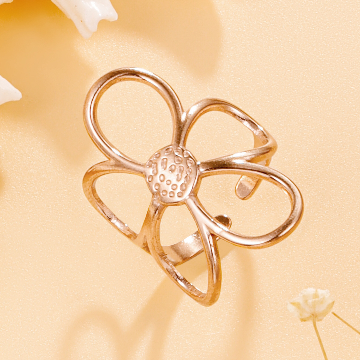 Stylish Versatile Hollow Flower Open Stainless Steel Ring