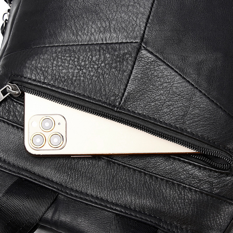 Internal bag structure: zippered hidden pocket, phone pocket, ID card pocket, compartment with zippered inner pocket