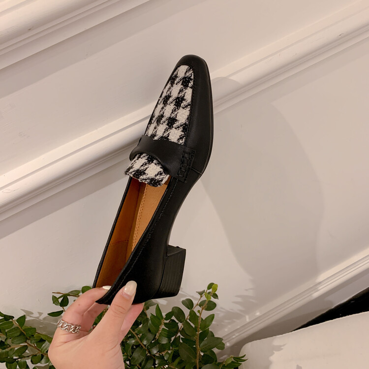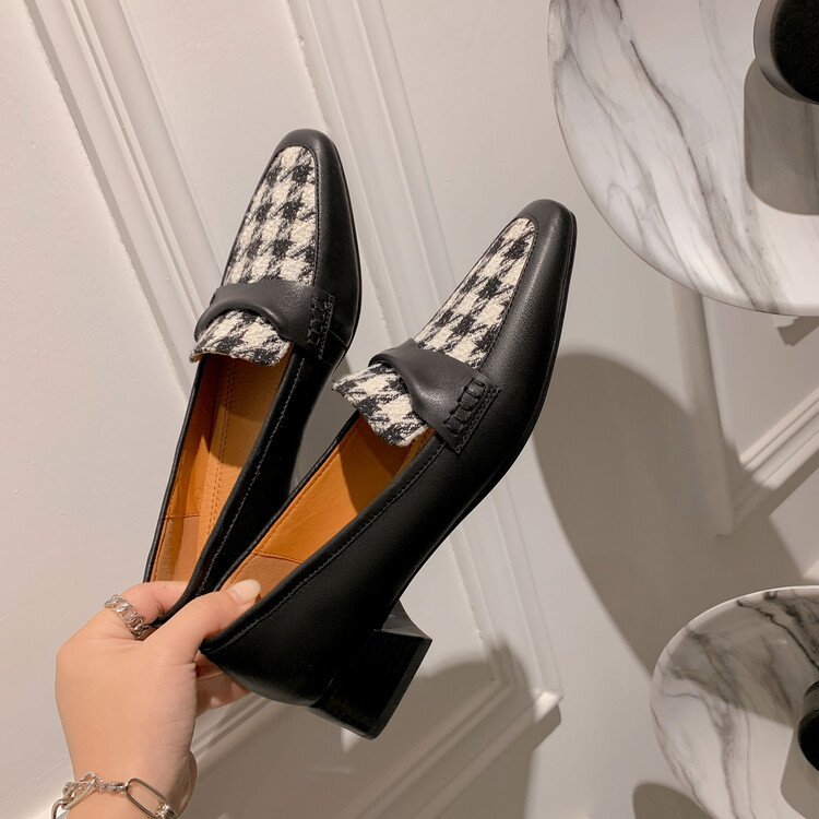 Popular elements: plaid, chunky heels, color matching