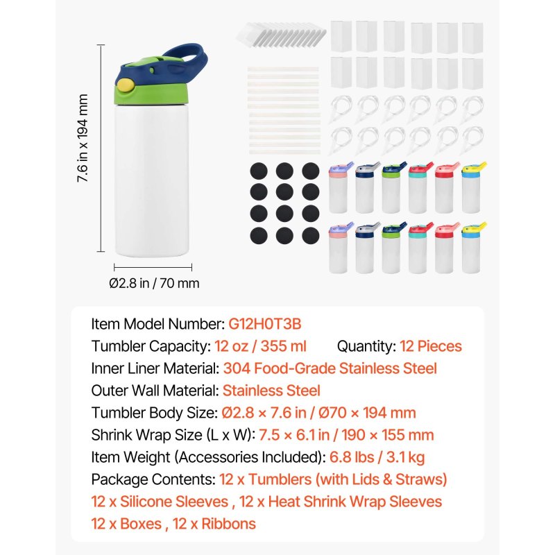 DIY Fun Coating Process: Our sublimation tumblers feature an auto-sprayed process that creates an even, firm coating for clear transfers with consistent color. The twelve-piece set with six lid colors lets kids make their own DIY cups and show their style