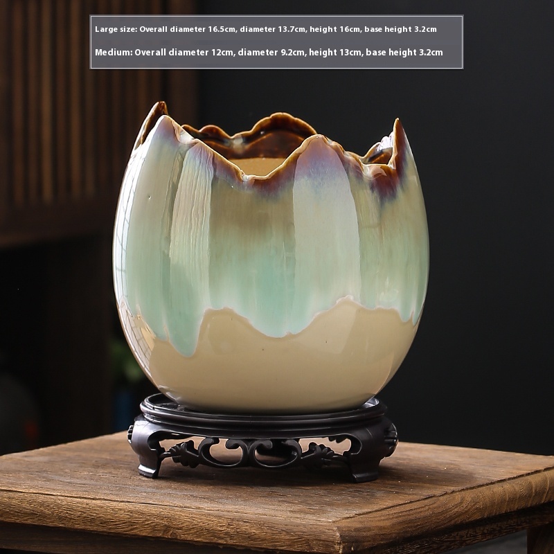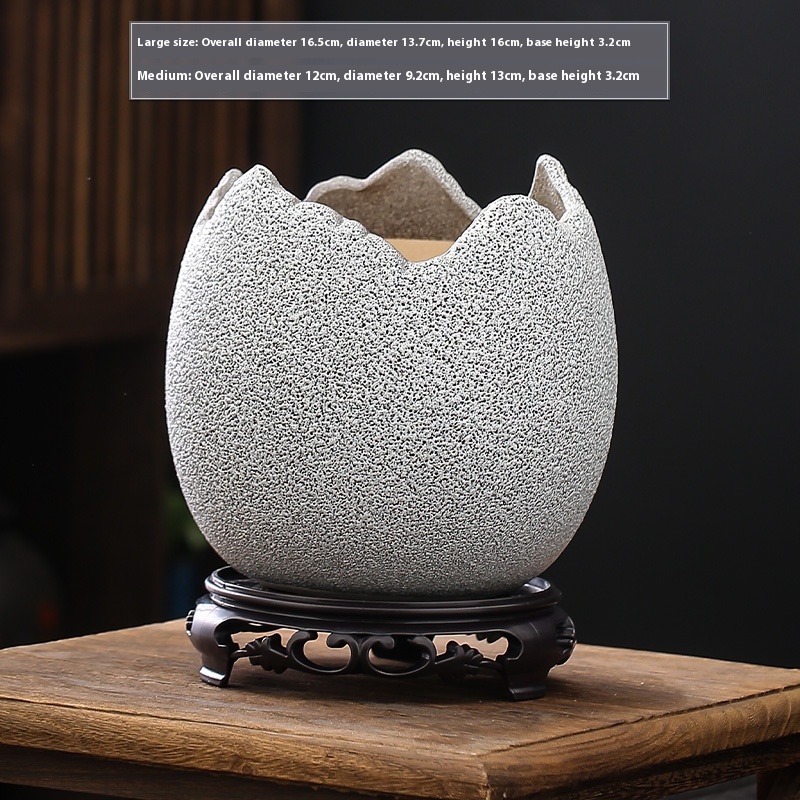 Color: XYD notch egg shell pots-White, XYD notch egg shell pots-black, XYD notch egg shell pots-blue, XYD notch egg shell pots-Brown, XYD notch egg shell pots-green flow glaze, XYD gap egg shell pots-gradient flow glaze, XYD gap egg shell pots-gradient flow glaze [with base], XYD gap egg shell pots-Brown [with base]], XYD gap egg shell pots-green glaze [with base], XYD gap egg shell pots-white [with base], XYD gap egg shell pots-black [with base]], XYD gap egg shell Basin-blue [with base]]
