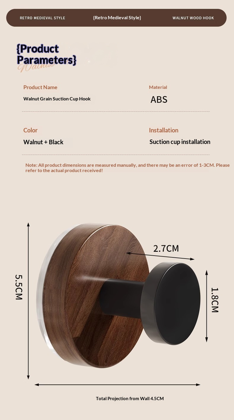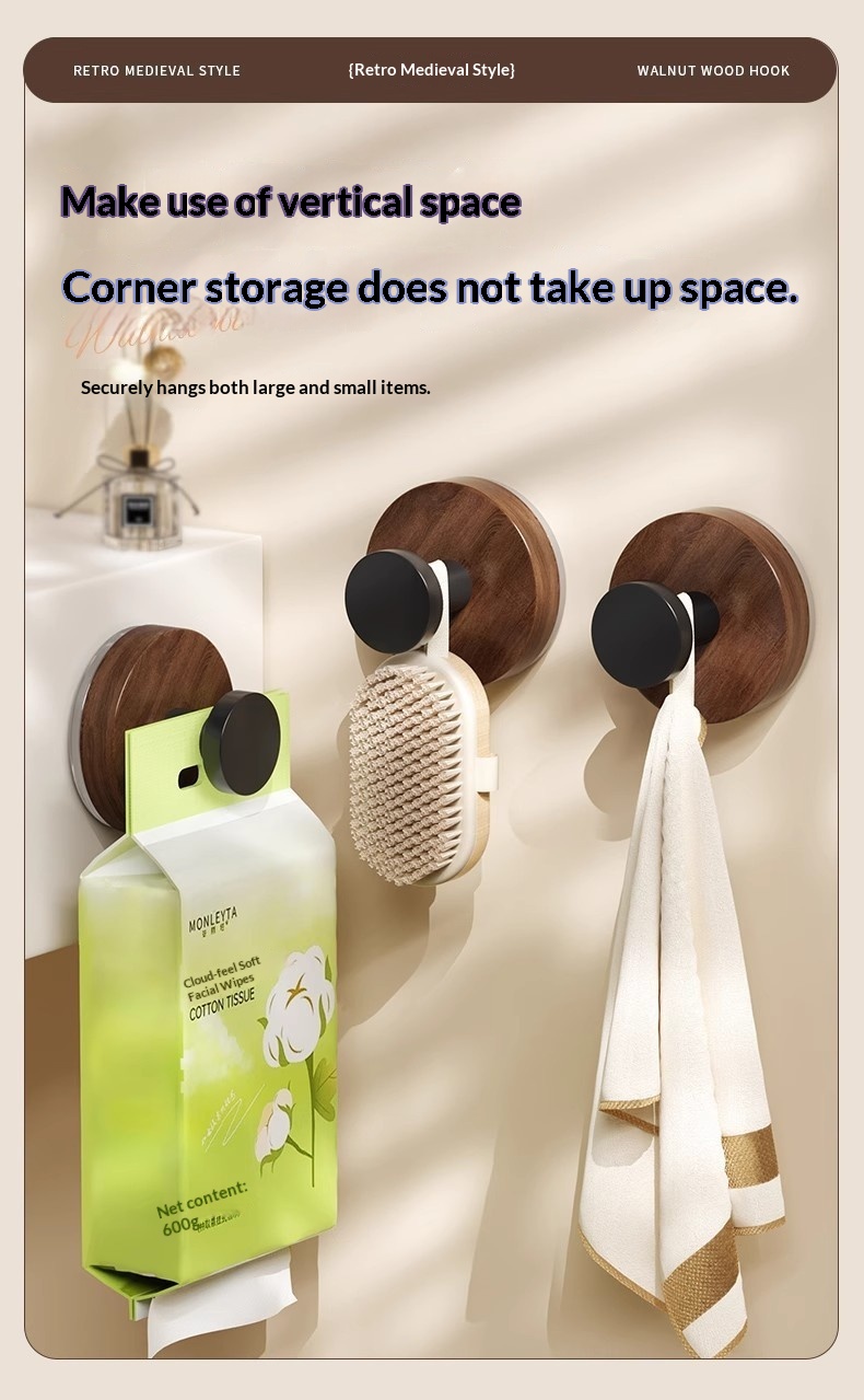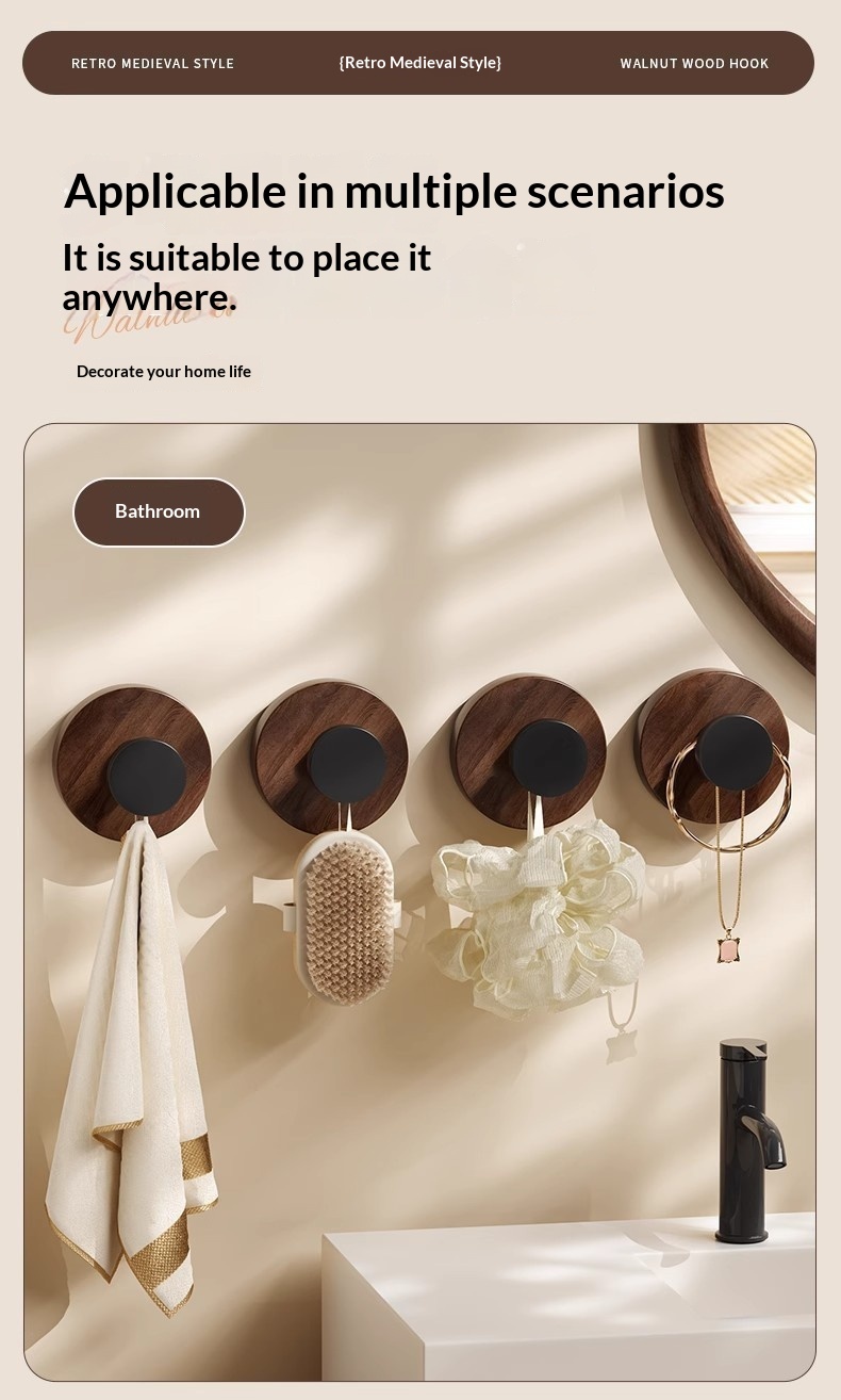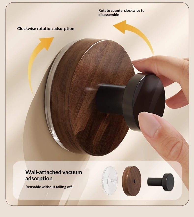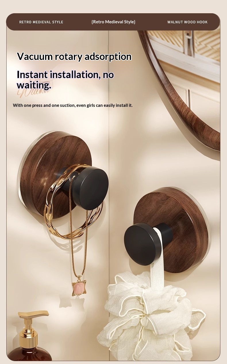 Colors: Walnut Grain Suction Hook, Walnut Grain Adhesive Hook, Dopamine Red Suction Hook—[Push-Type], Dopamine Blue Suction Hook—[Push-Type], Dopamine Yellow Suction Hook—[Push-Type], Dopamine Pink Suction Hook—[Push-Type]