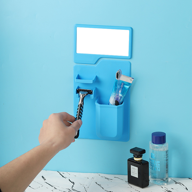 Suction Wall Silicone Toothbrush Holder Mirror Combination