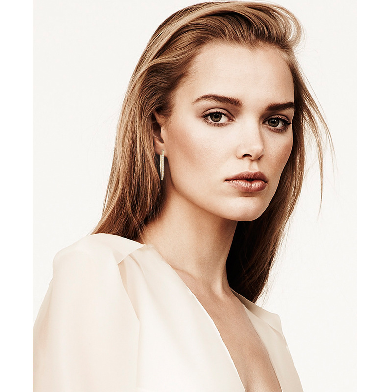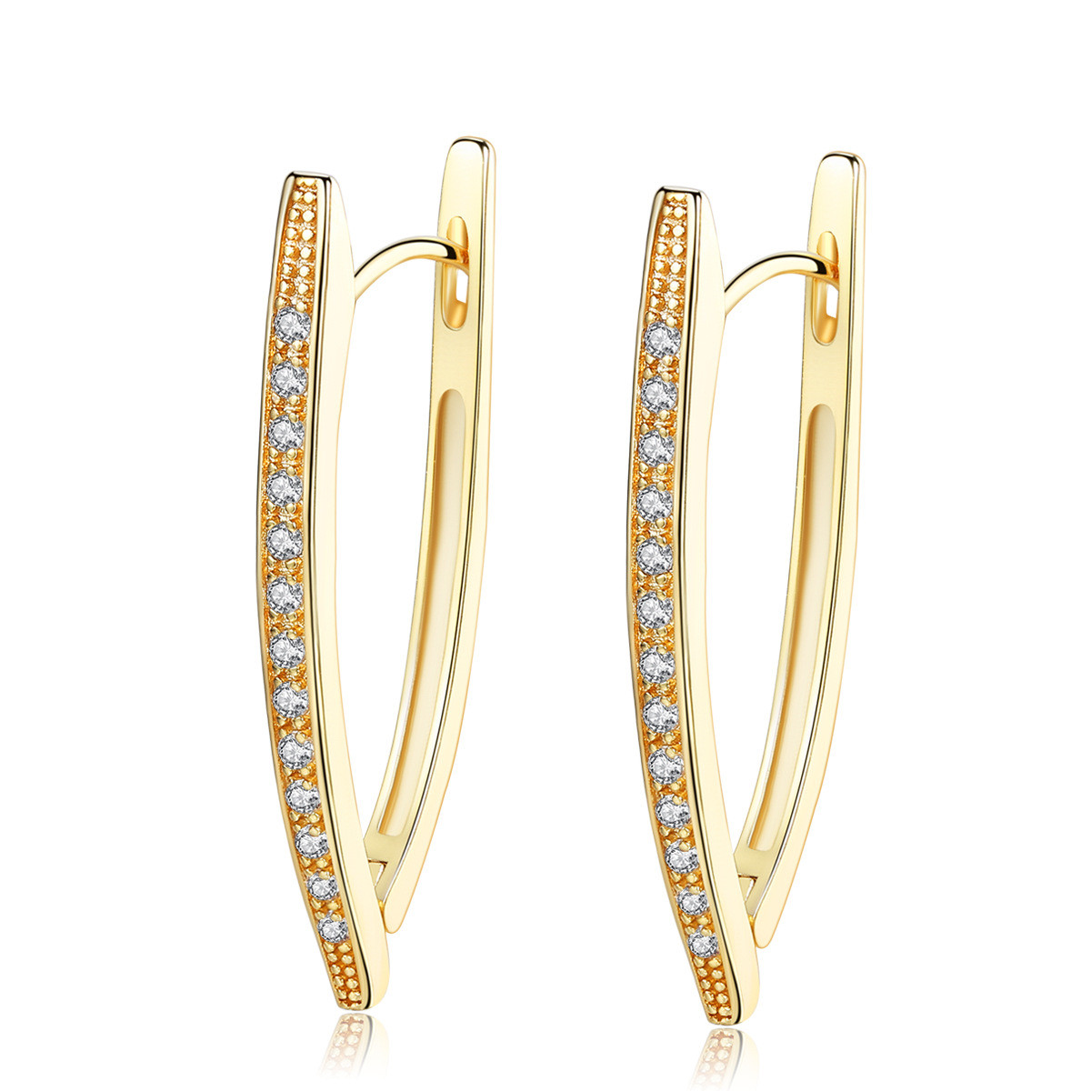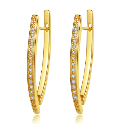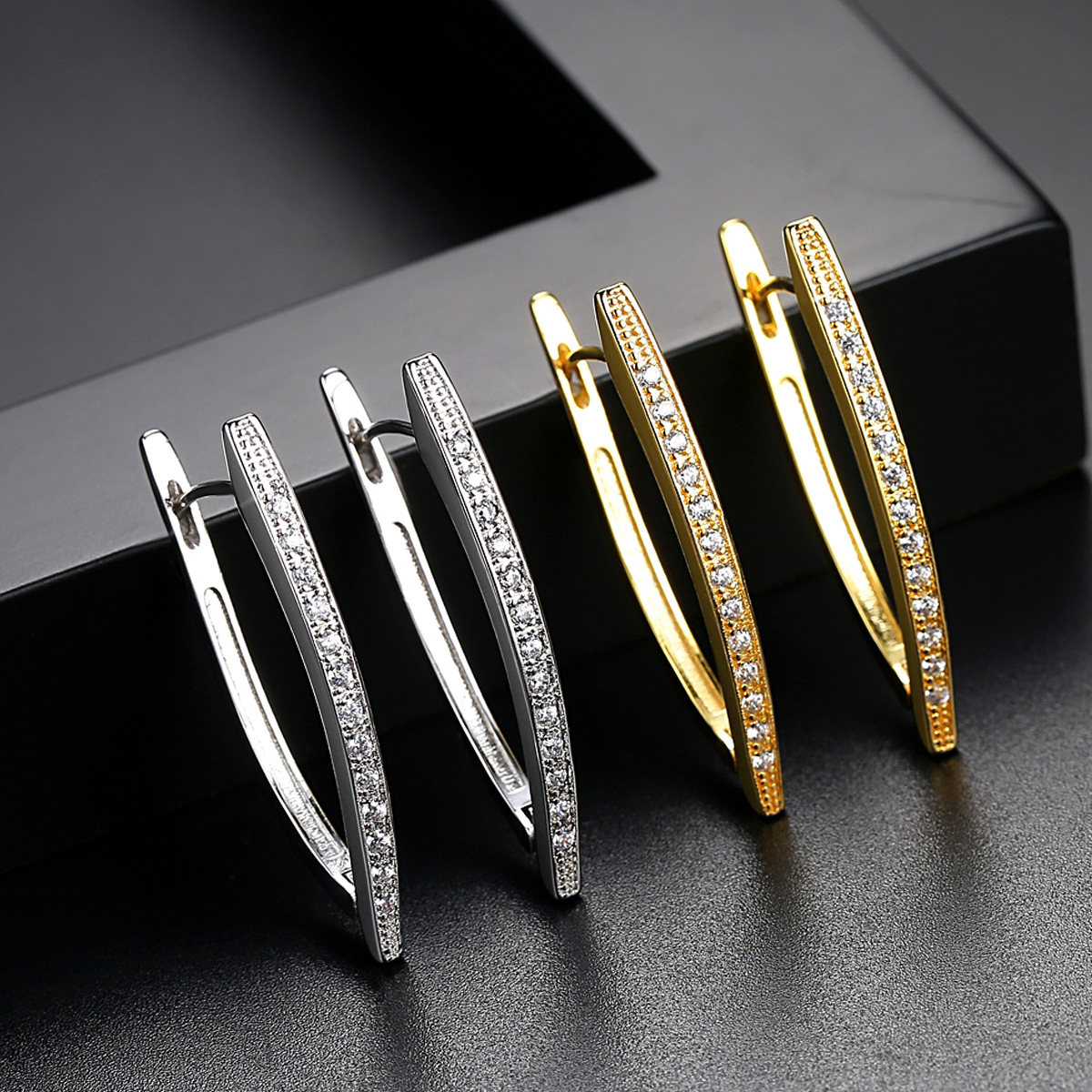 Material: copper inlaid with AAA zircon and electroplated real goldSize: 35mm*2.5mmWeight: 4.75gColor: white gold/18K gold
