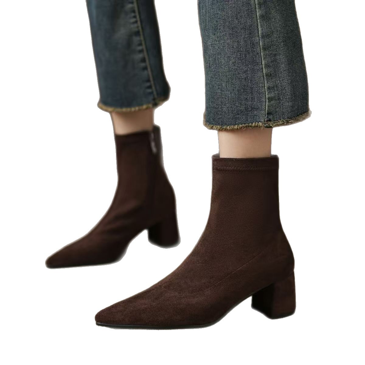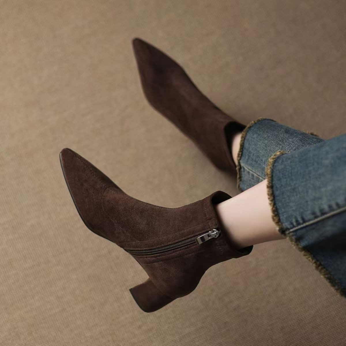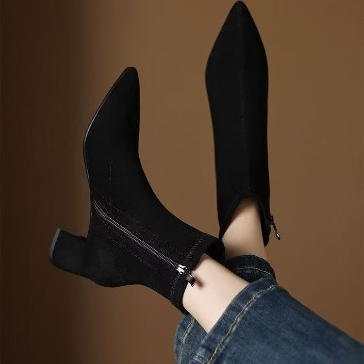 Suede Ankle Boots With Mid Heel
