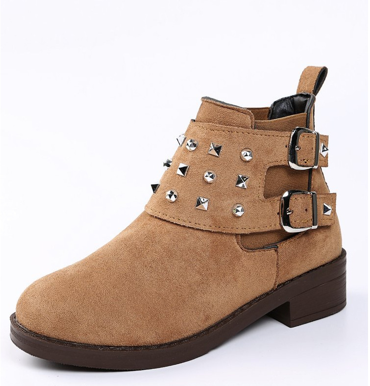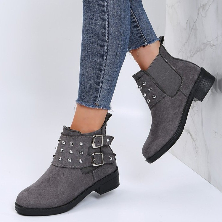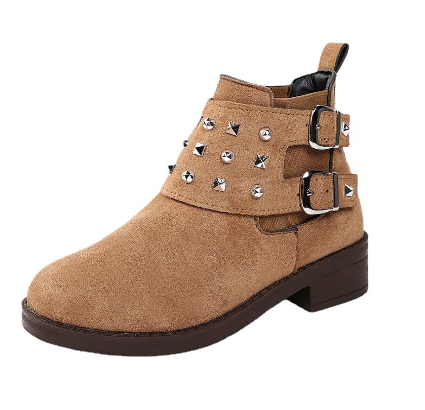 Suede Belt Buckle Rivet Vintage Round Head Heel