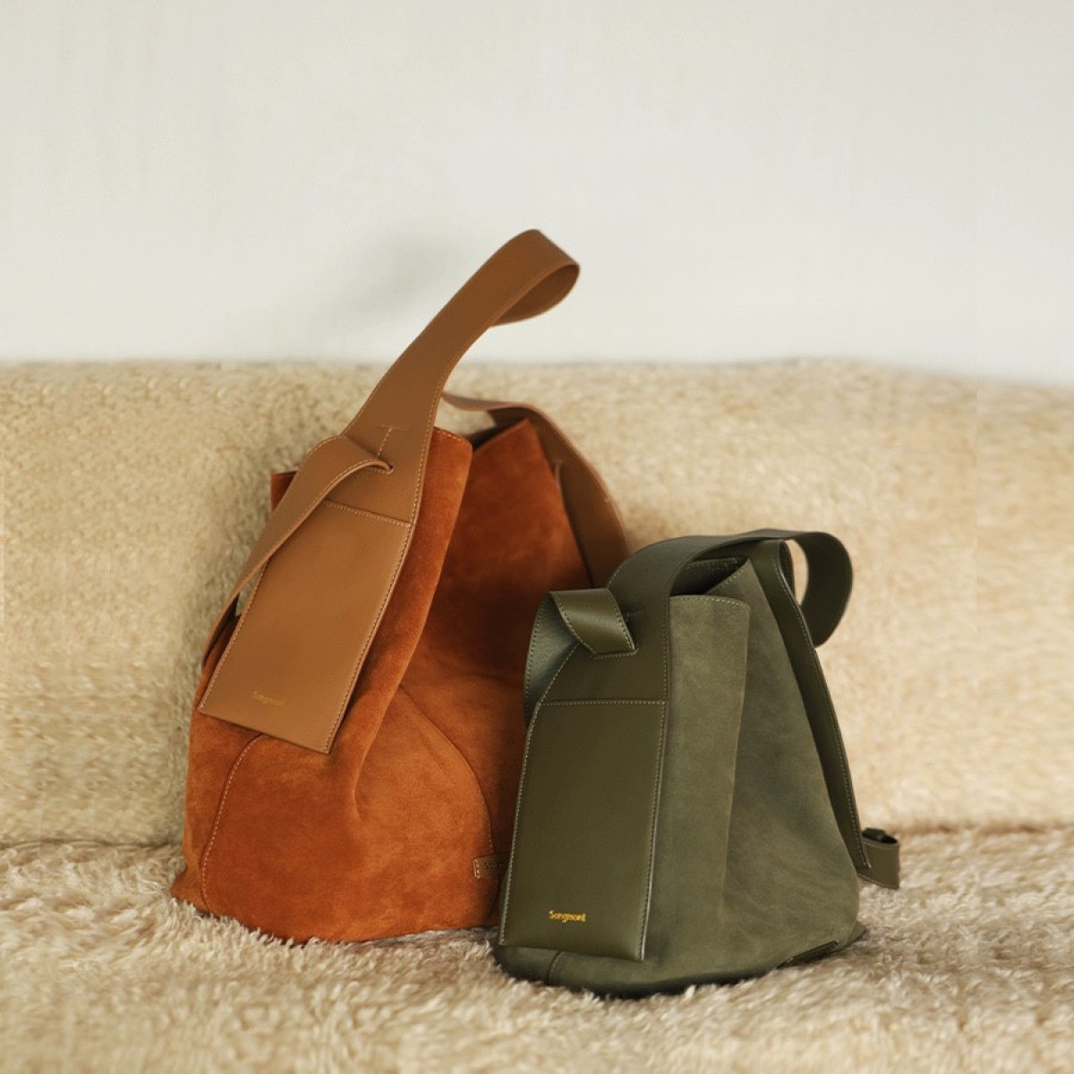Color: olive green, caramel