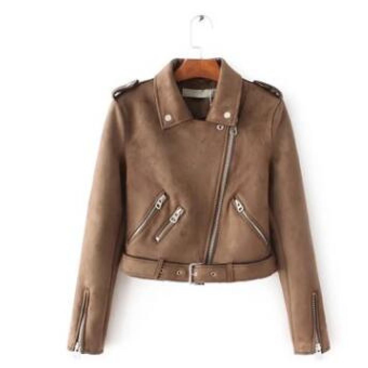 PU/X009OP Europe all-match suede jacket zipper slim short ladies leather coat