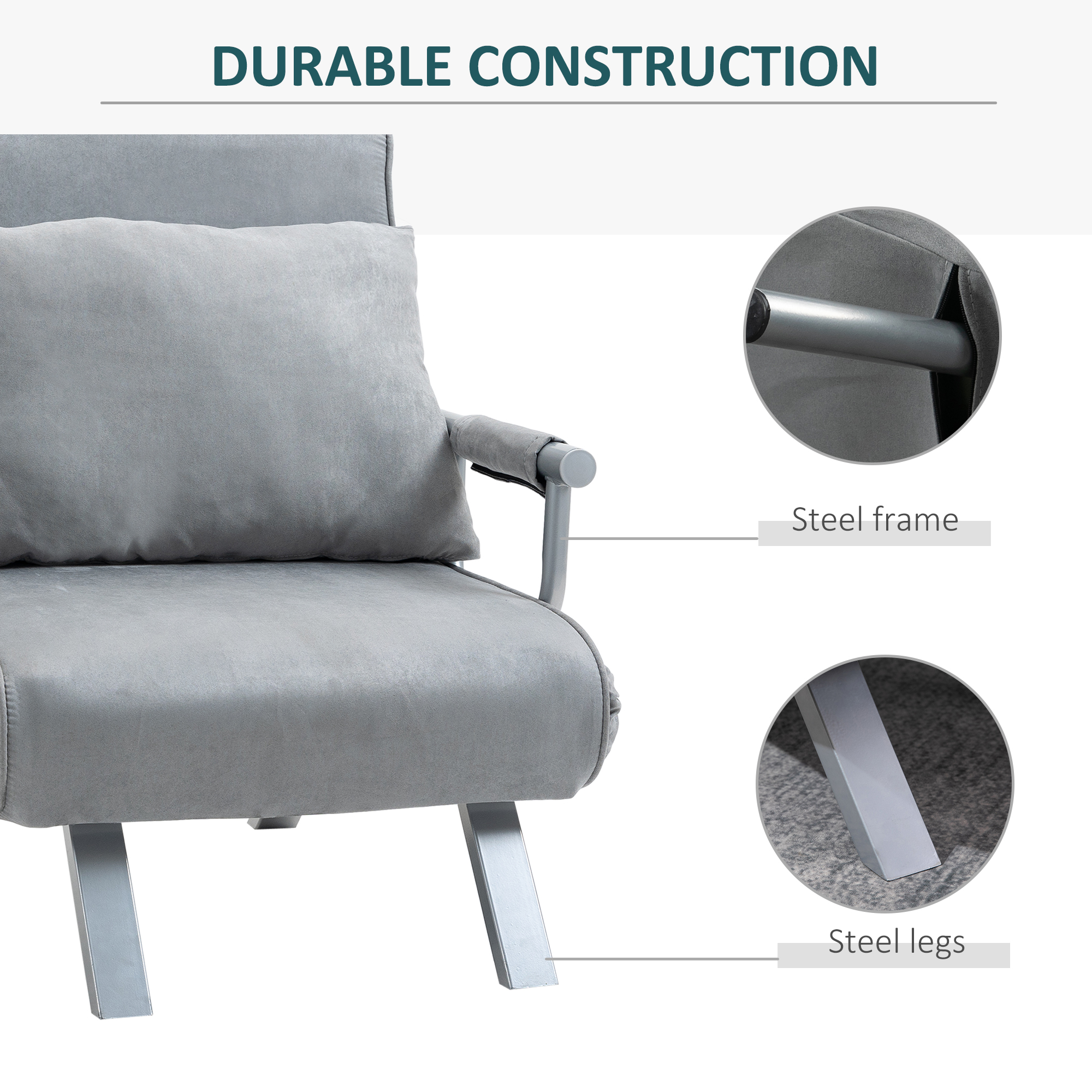 Switch from sitting to sleeping in an instant, thanks to this convertible chair from . It effortlessly combines comfort and style for a piece which looks just as good as it feels. Using steel for the frame, the structure is solid and tough, and features a five-level back to adjust to a position best for you. Filled with thick foam padding, it's wrapped in suedette upholstery which is beautifully soft to the touch. It comes complete with armrests, slanted legs for stability and a large pillow for extra comfort and support. Now your guests will always have somewhere cosy to sleep when they come over for the night.