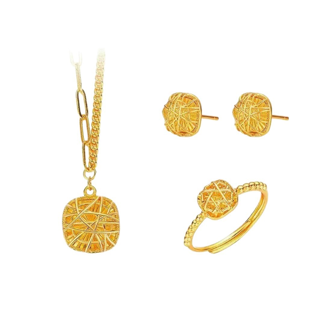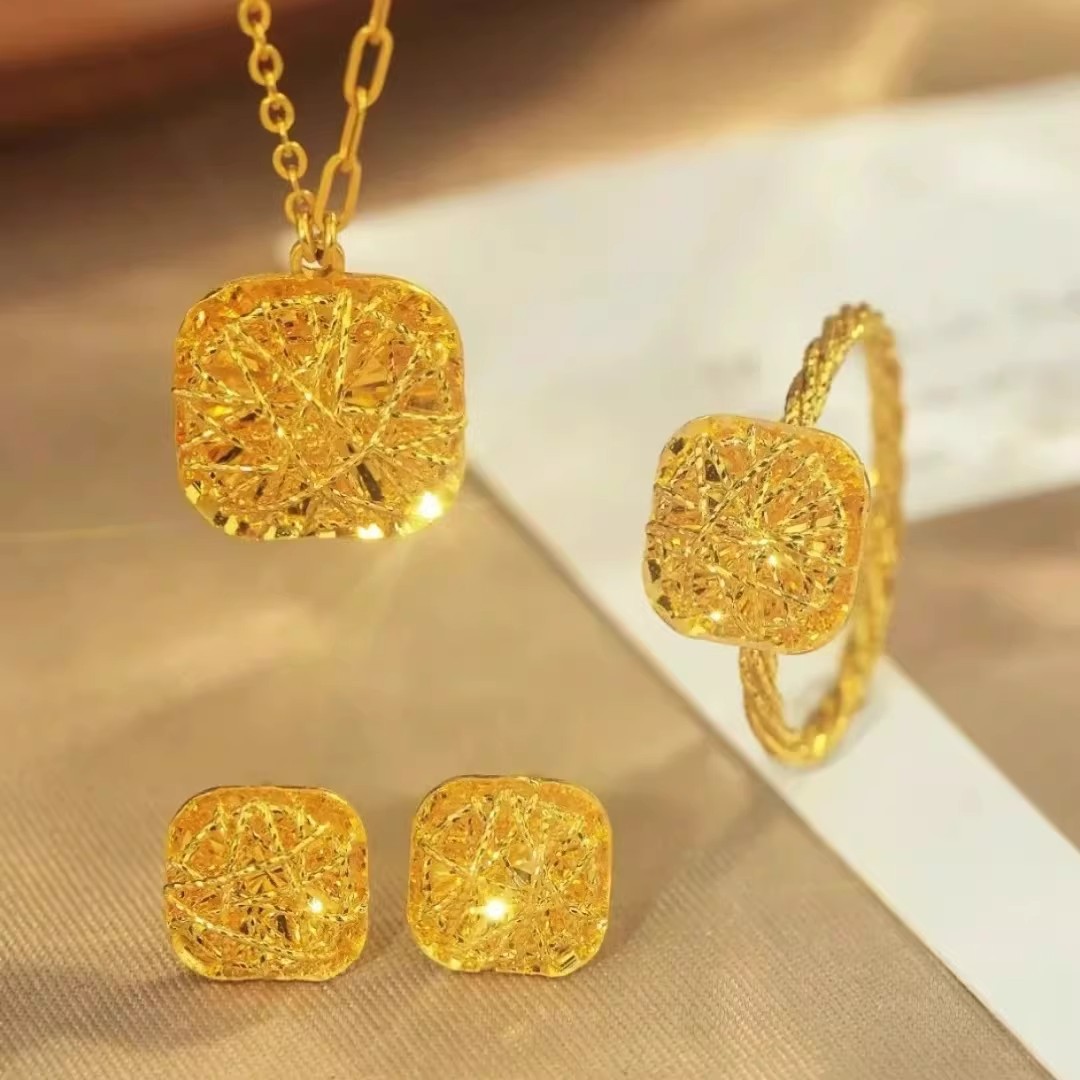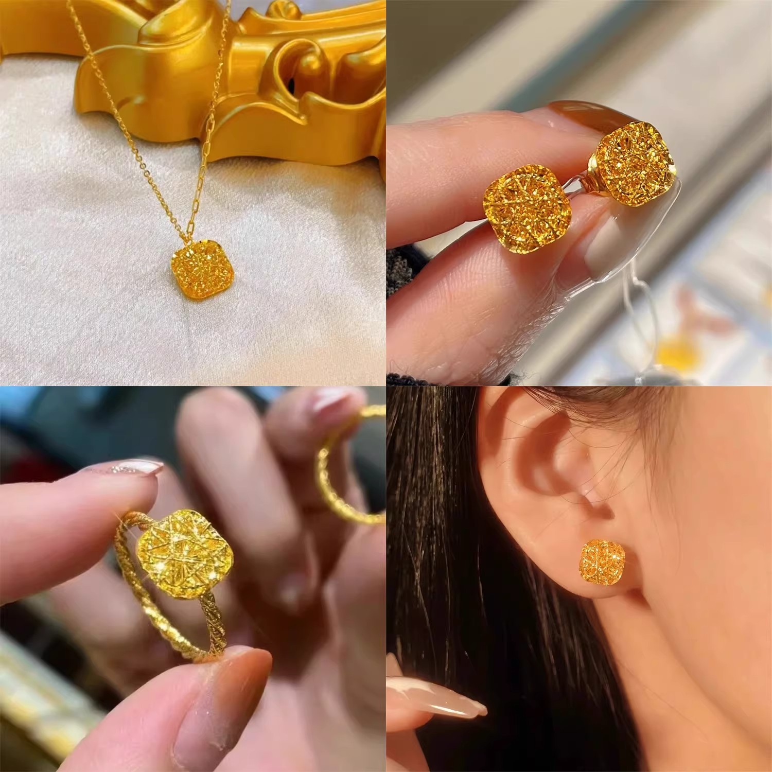 Colors: LL Square Sugar Filigree Hollow Necklace, LL Square Sugar Filigree Hollow Adjustable Ring, LL Square Sugar Filigree Hollow Stud Earrings