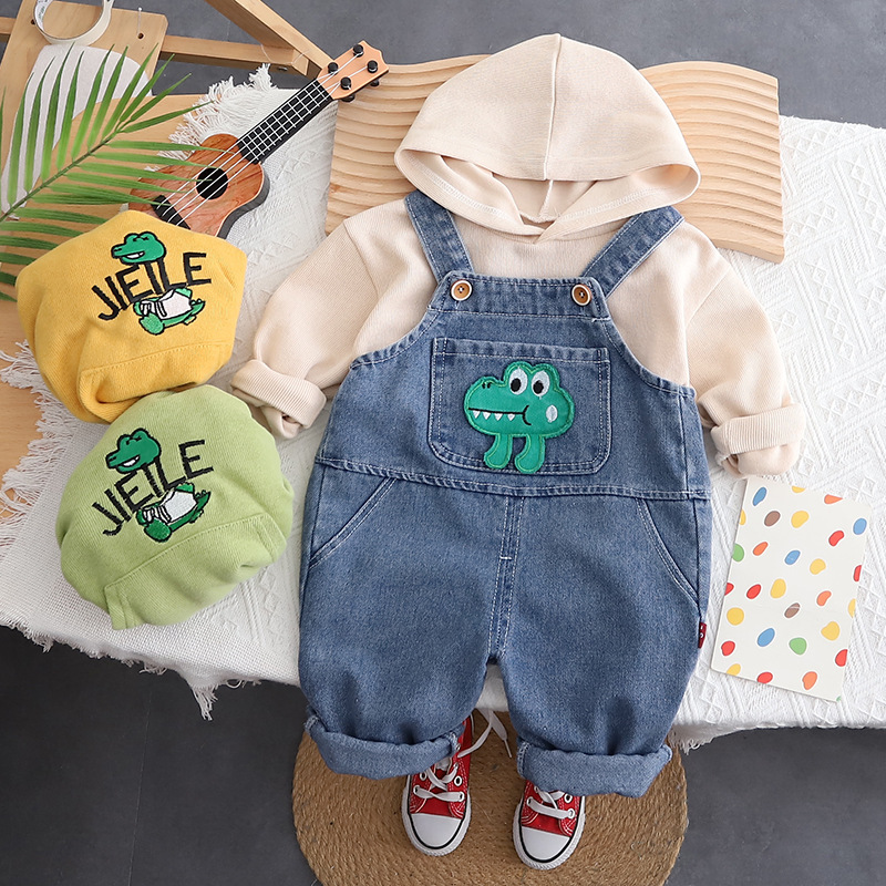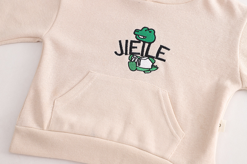 Color: long sleeve frog hoodie bib pants suit yellow, long sleeve frog hoodie bib pants suit beige, long sleeve frog hoodie bib pants suit Green