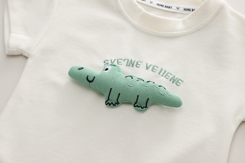 Color: short sleeve letter embroidery white suit, short sleeve letter embroidery suit Green