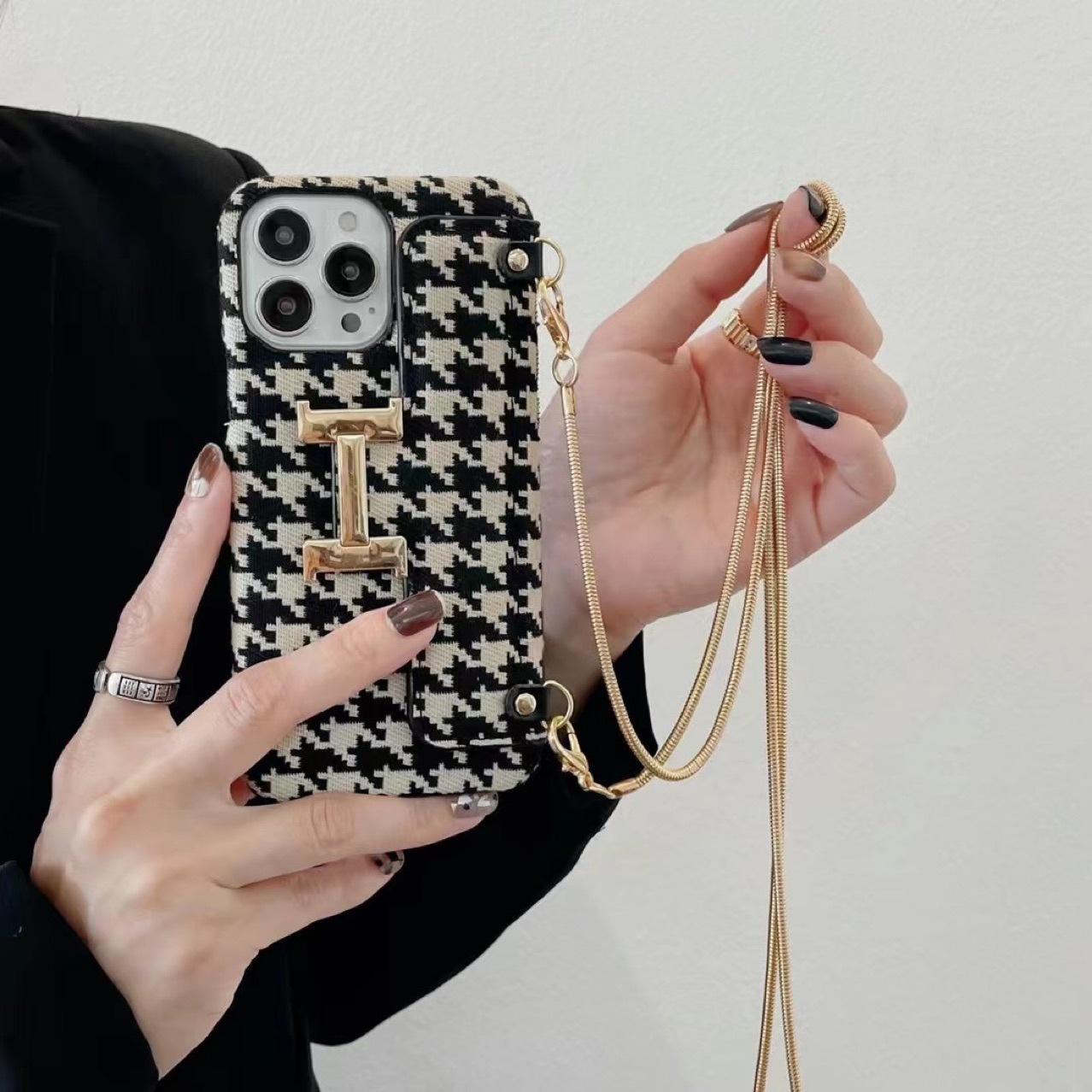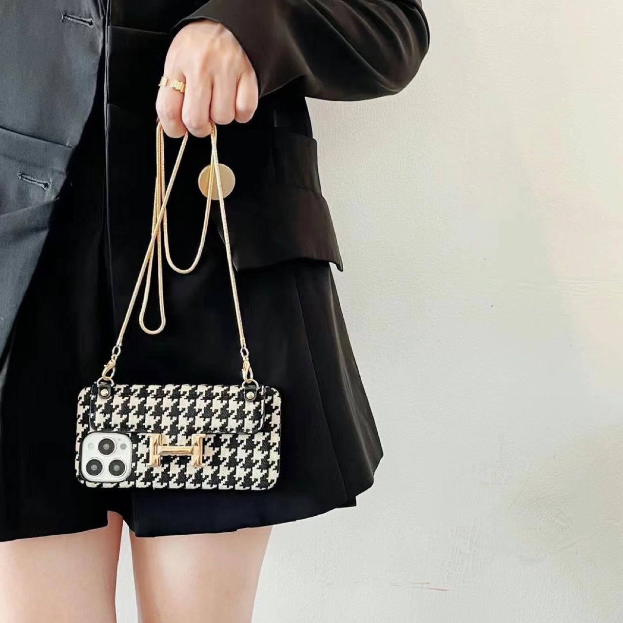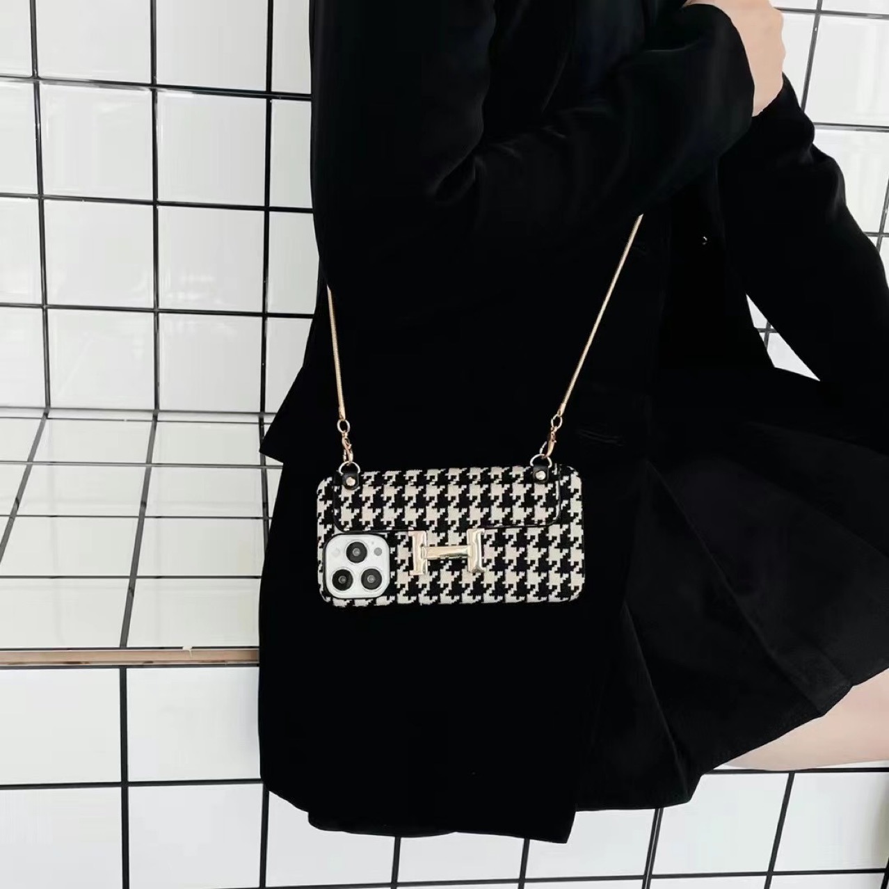 Color: houndstooth card H+ metal chain