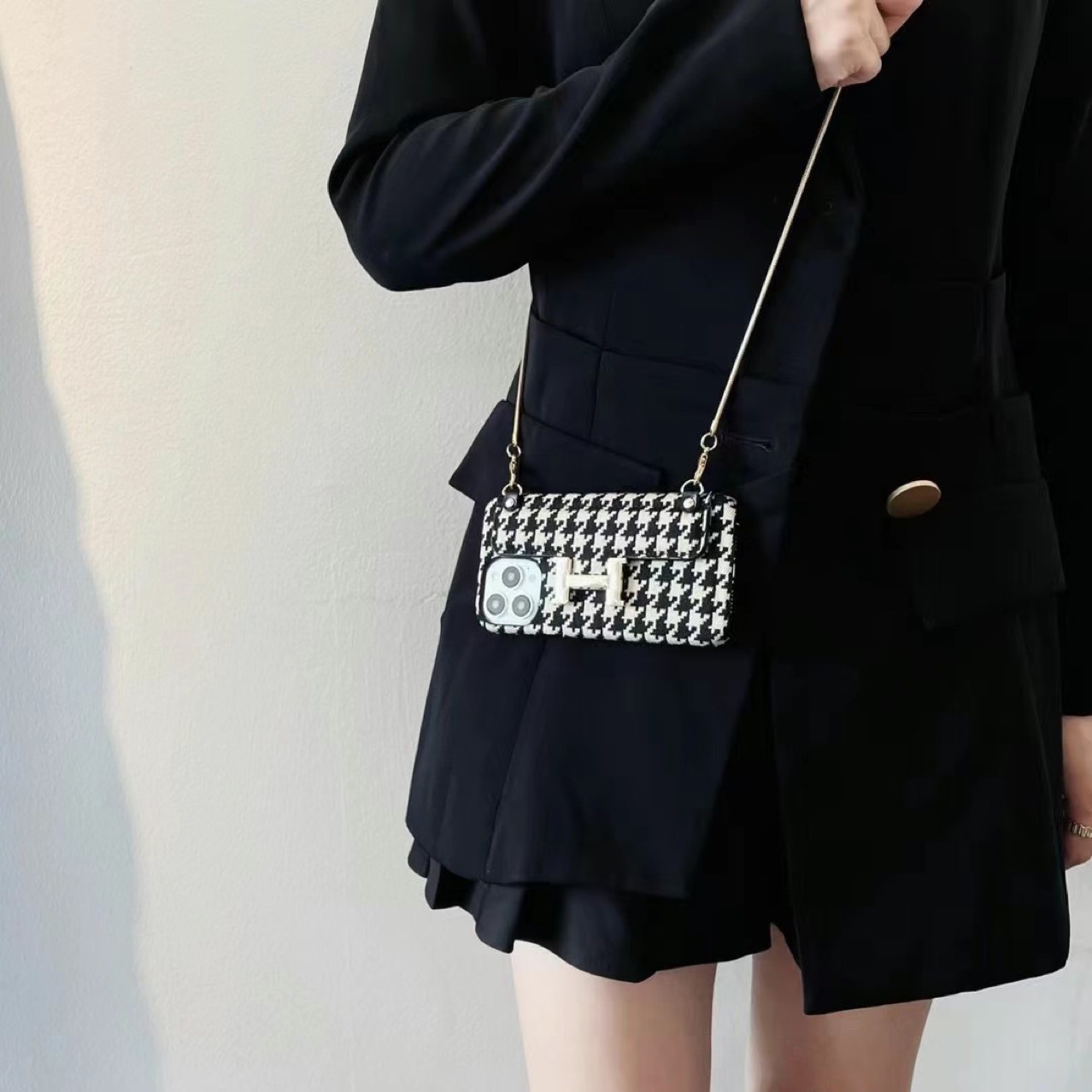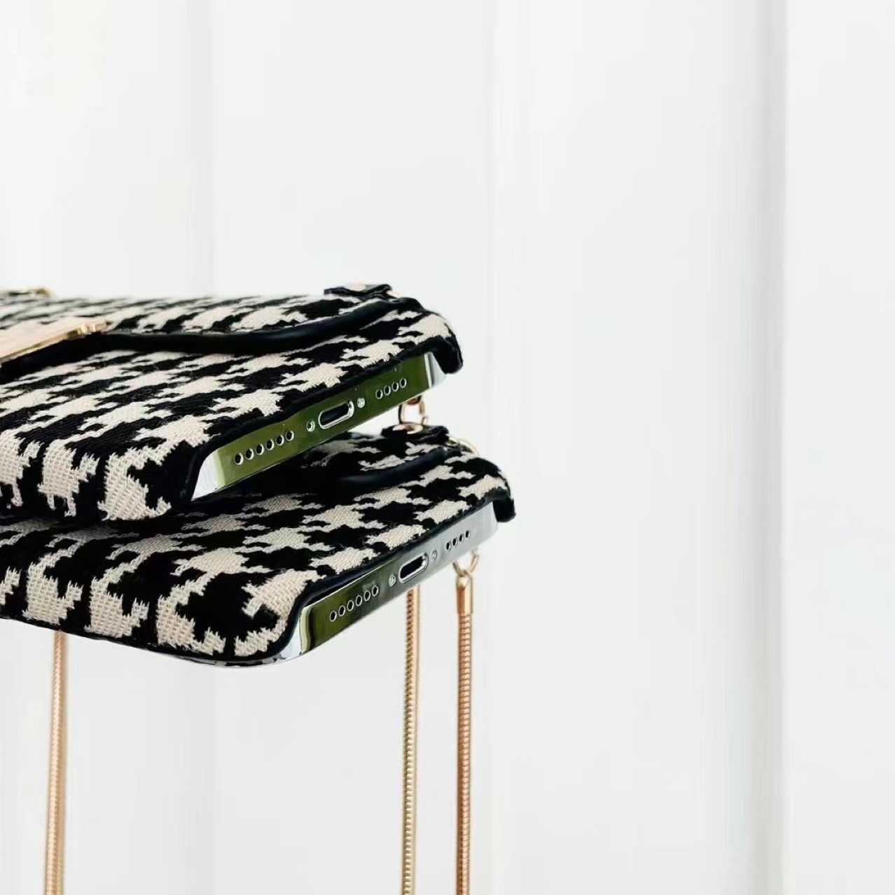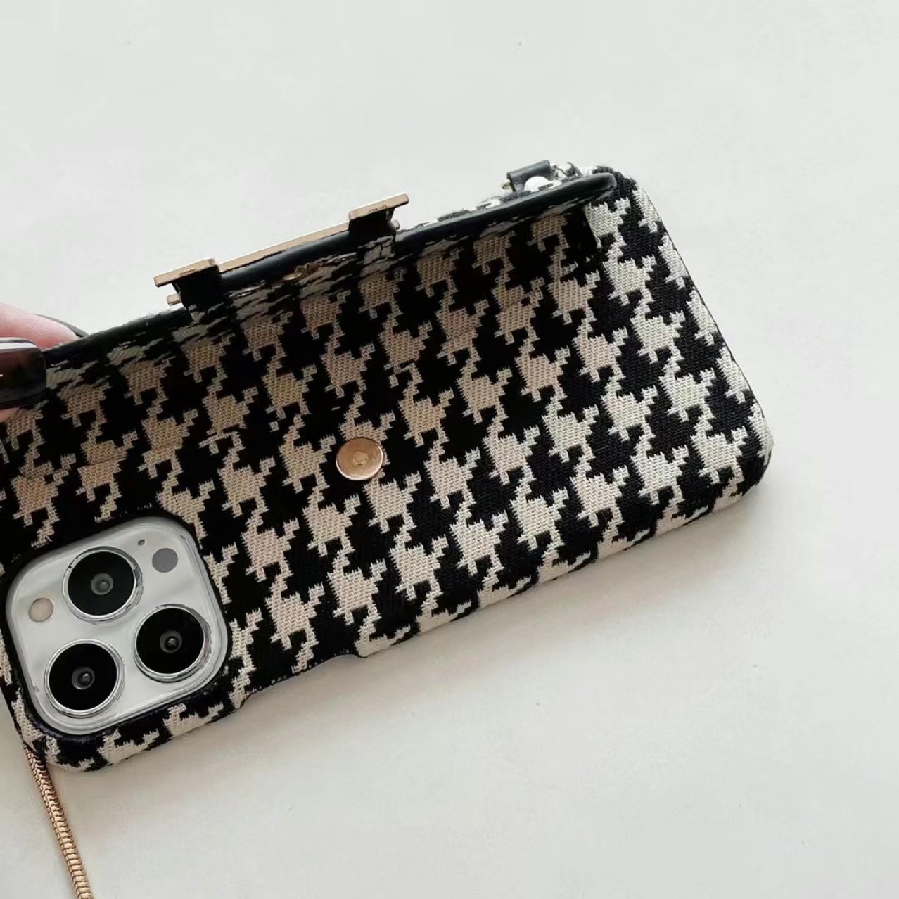 Color: houndstooth card H+ metal chain