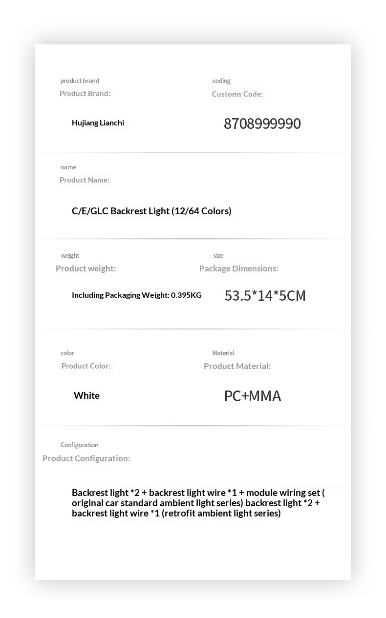 Dimensions Suitable For The New C-ClassW206 And The New GLCX254 Compatible With Factory-installed Ambient Lighting For CEGLC Models Also Compatible With Aftermarket Ambient Lighting For CEGLC Models